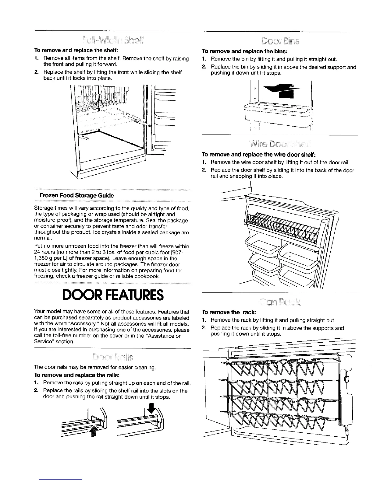 1. Remove the wire door shelf by lifting it out of the door rail.
