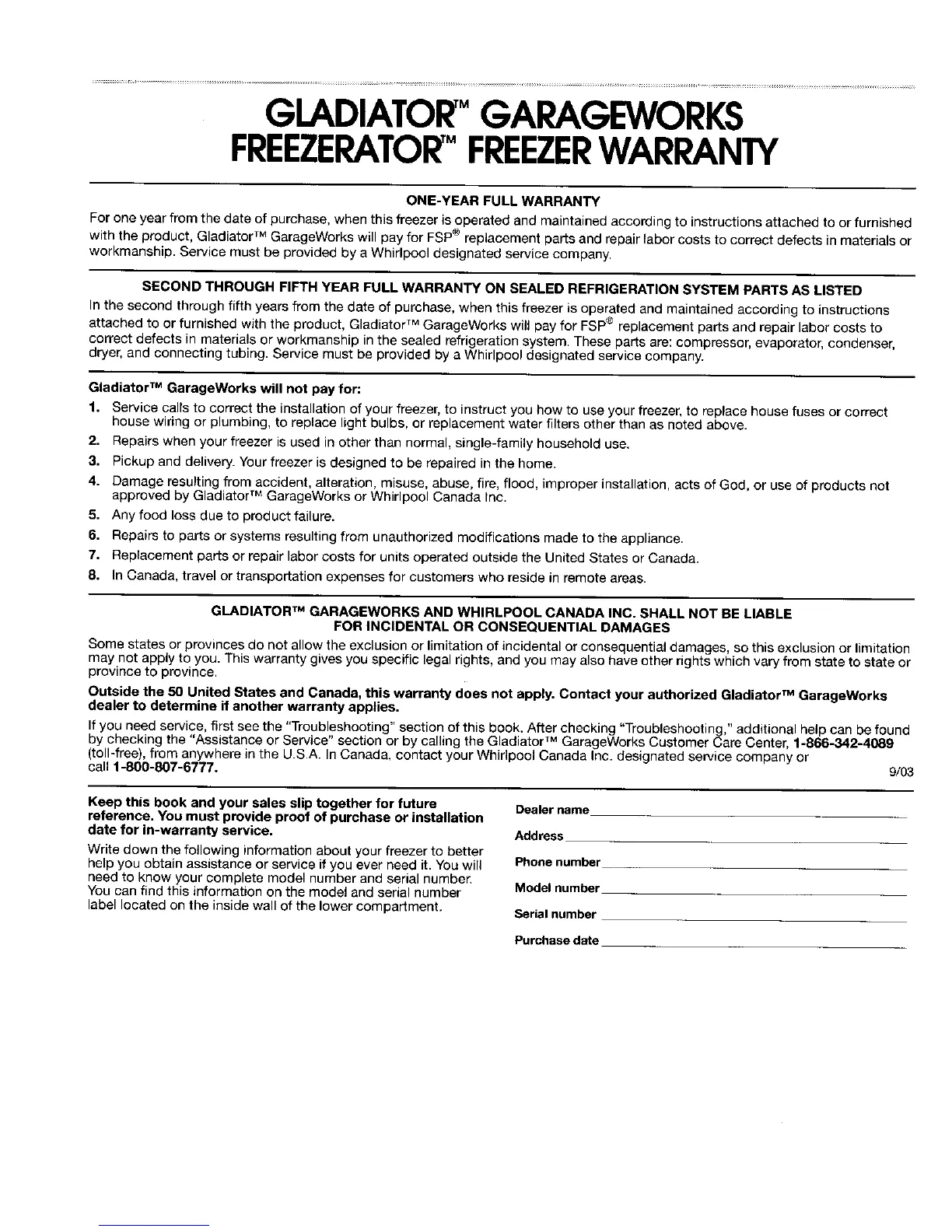 GLADIATOR TM GARAGEWORKS AND WHIRLPOOL CANADA INC. SHALL NOT BE LIABLE