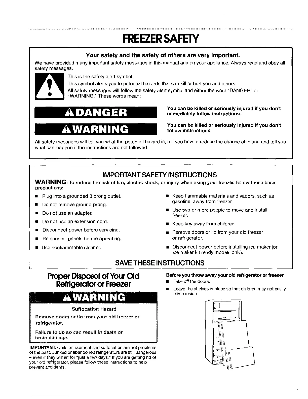 WARNING: To reduce the risk of fire, electric shock, or injury when using your freezer, follow these basic