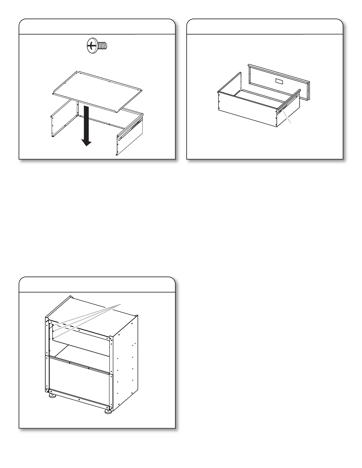 Trabajando desde la parte superior, je la parte inferior del cajón