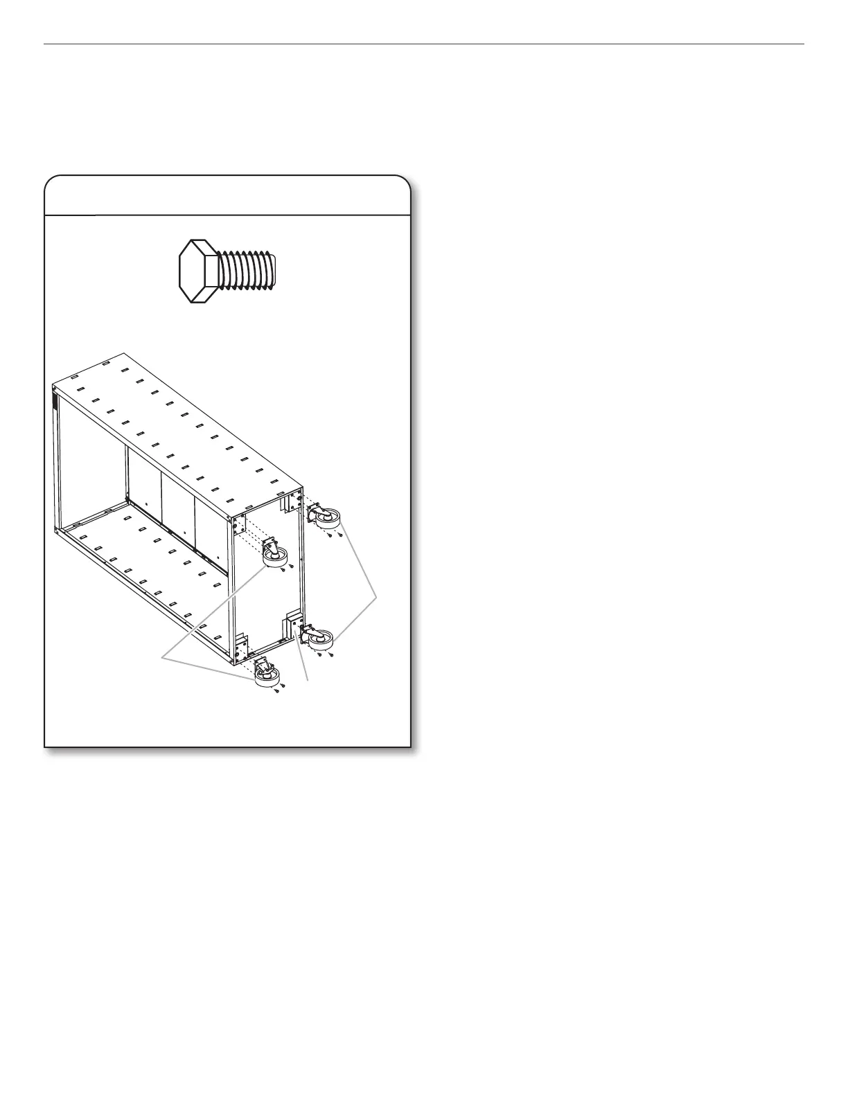 placement of the casters. Using four hex head bolts, attach the