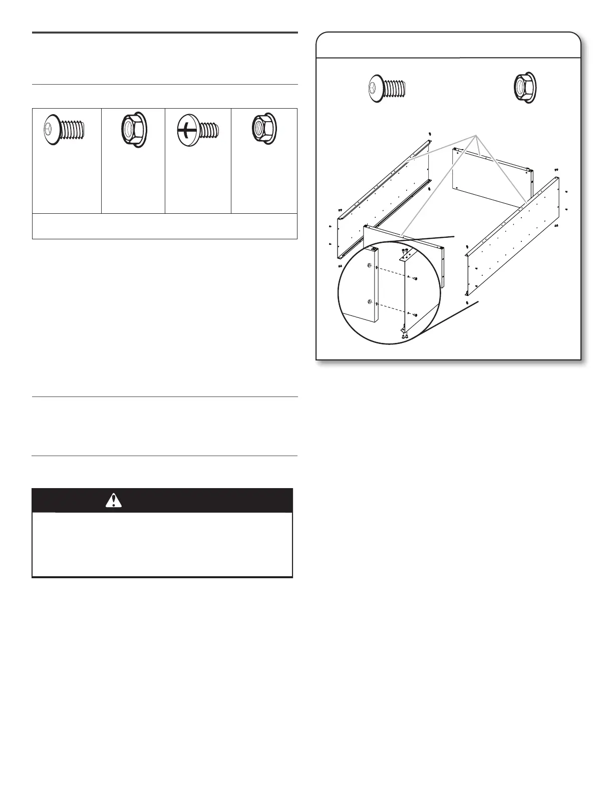 8 pcs 5/16" hex-head bolts (F1), 2 pcs at each corner. Do not