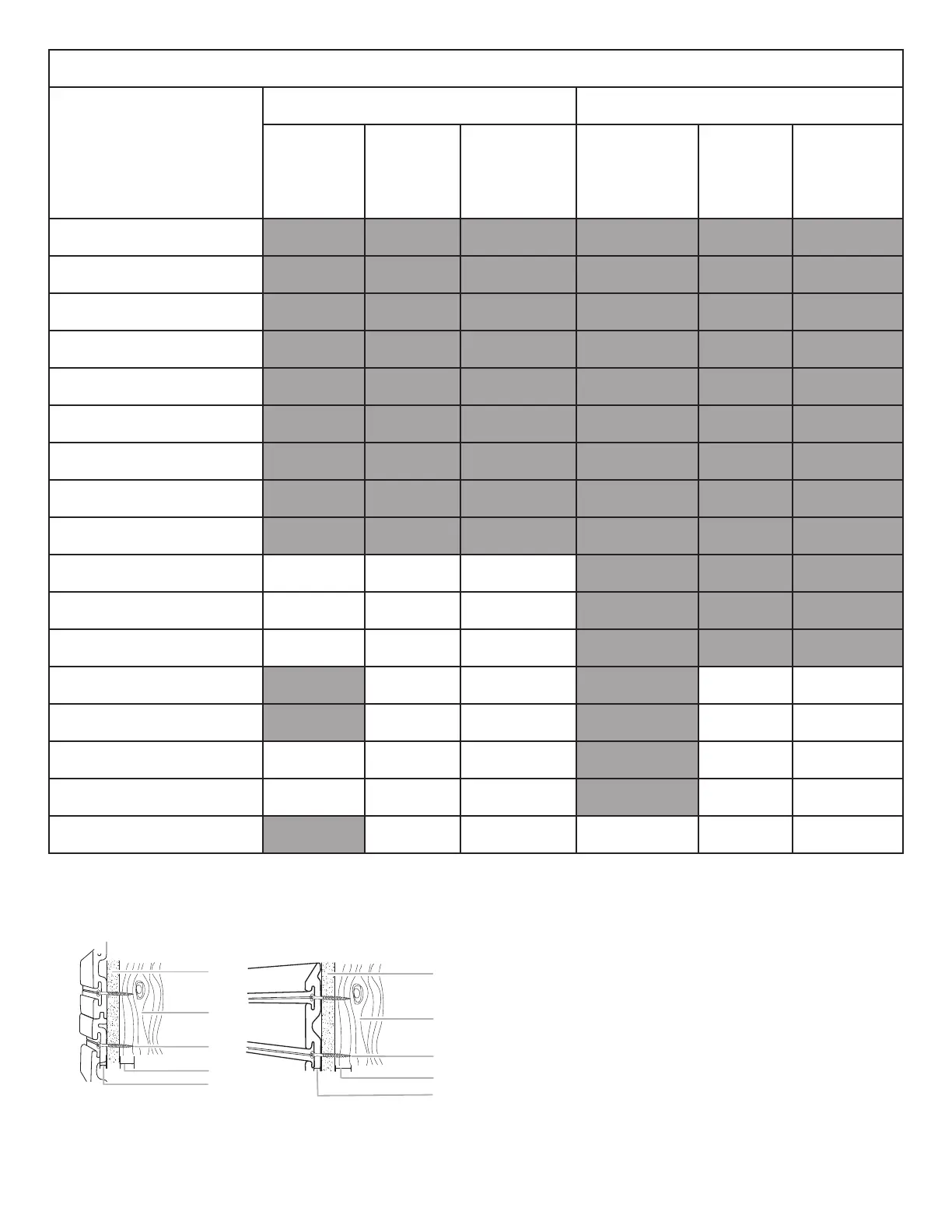 de yeso de un espesor no indicado en la tabla anterior, vea la