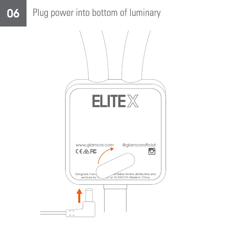 Glamcor Elite X - Plug Power Into Luminary; Power Adapter Connection