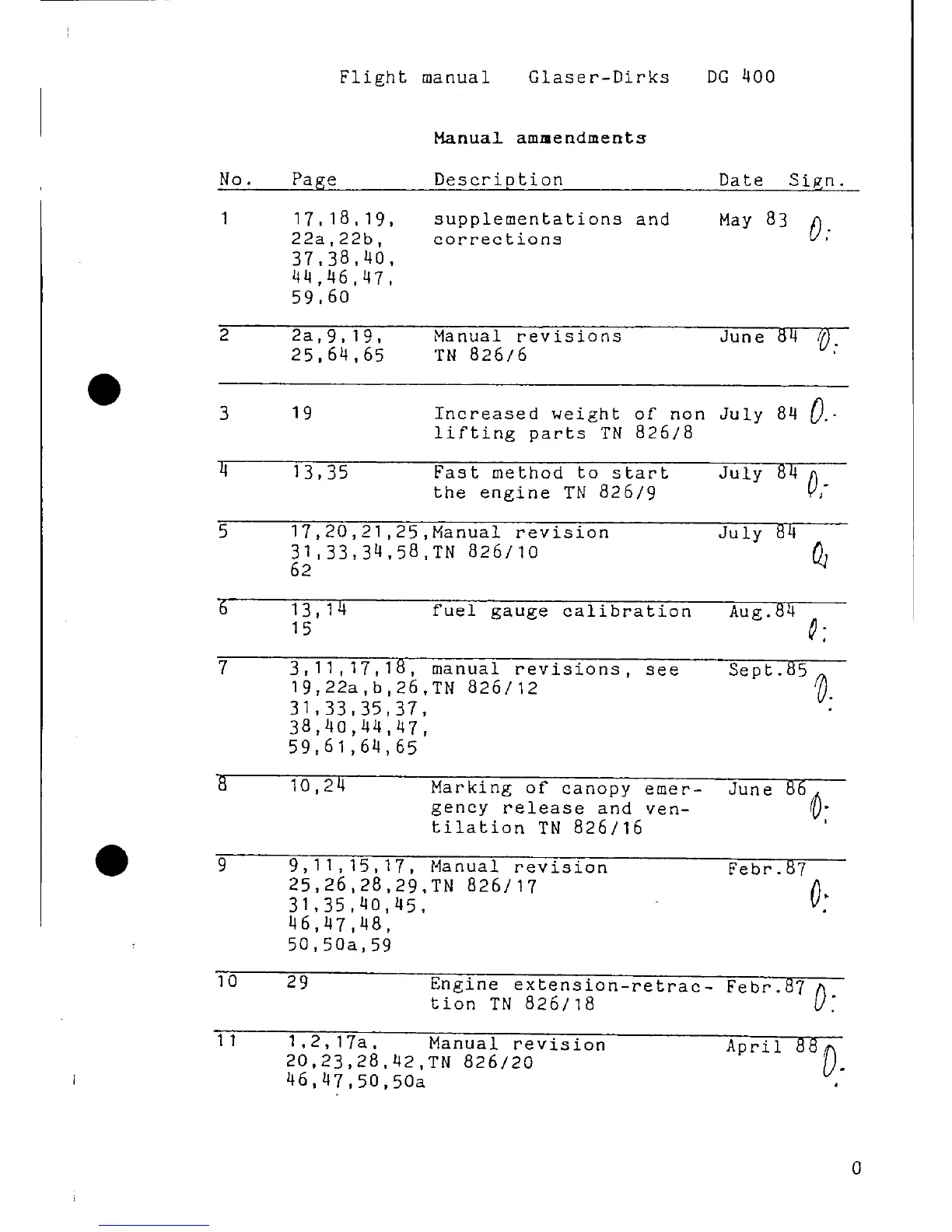 Glaser-Dirks DG-400 - Manual Ammendments