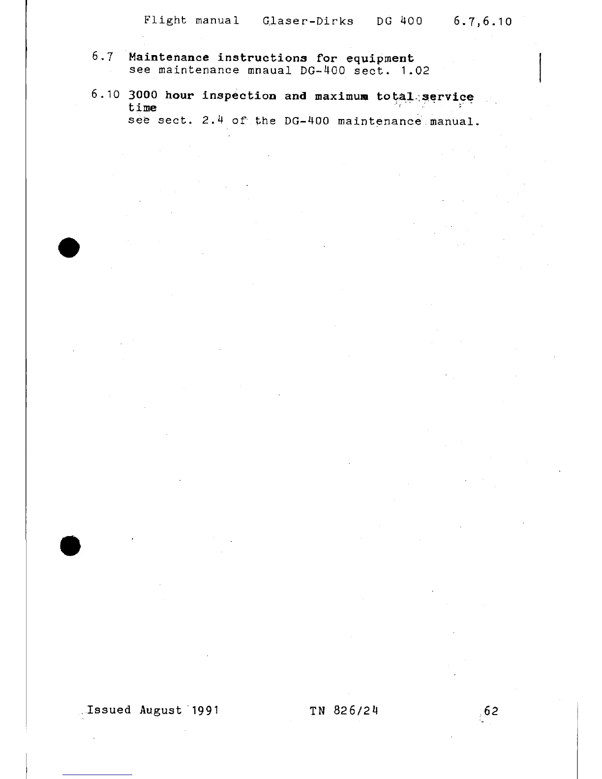 Glaser-Dirks DG-400 - Maintenance Instructions for Equipment