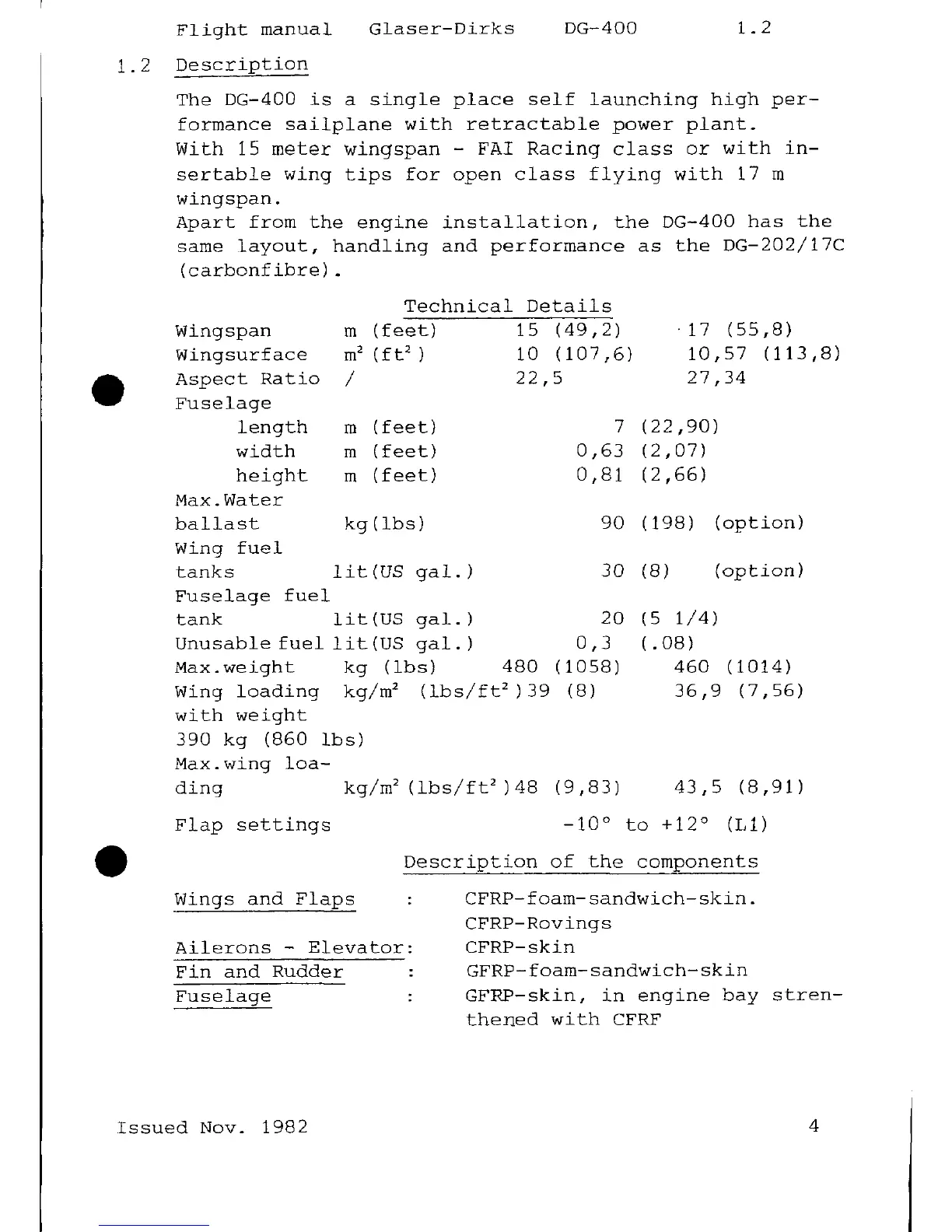 Glaser-Dirks DG-400 - Description; Technical Details; Description of the Components
