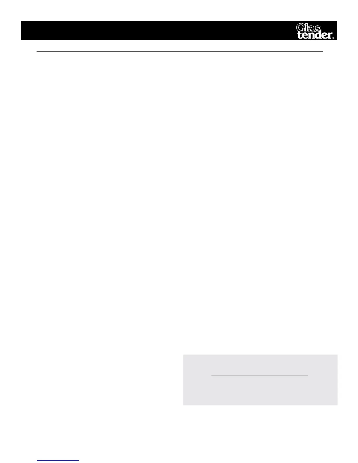 800.748.0423 • 989.752.4275 • Fax 800.838.0888 / 989.752.4444 • www.glastender.com