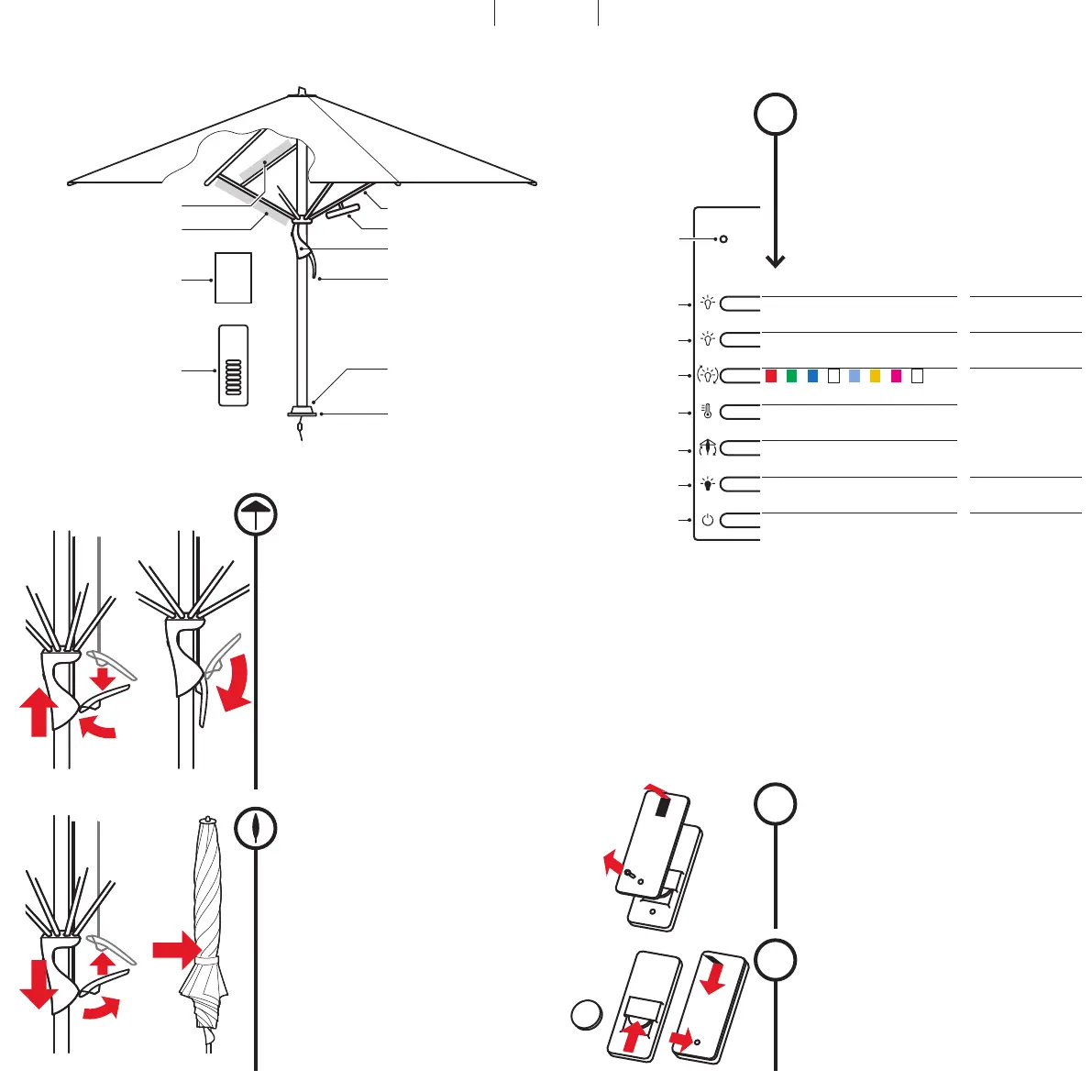 Keep button 1 or 2 pressed down to change the colour temperature **