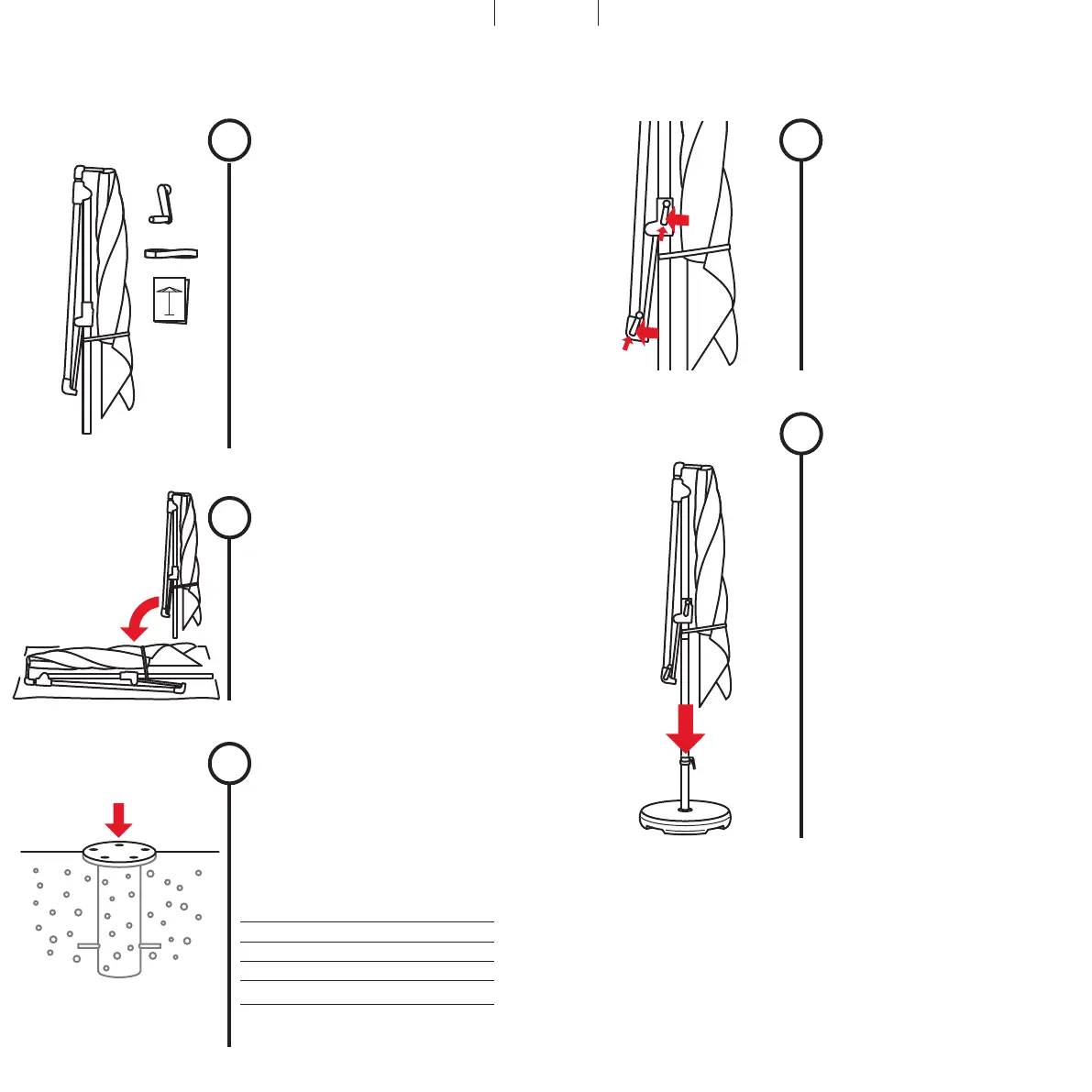 1. Alzare l’ombrellone e metterlo nel