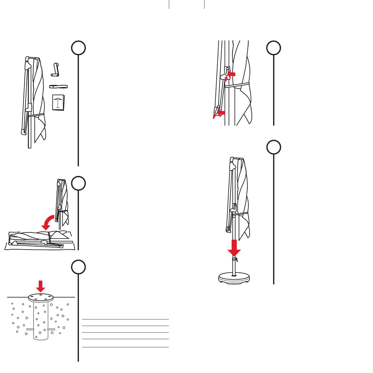 1. Poner en pie la sombrilla y colocarla