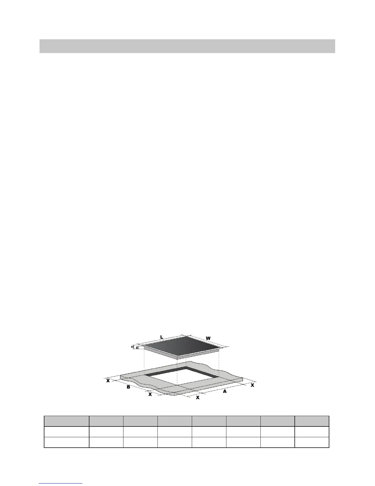 • Cut out the work surface according to the sizes shown in table below.
