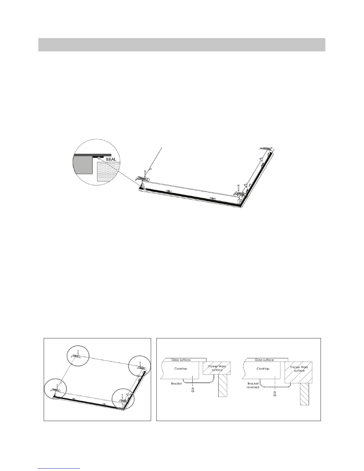 packaging). Fit moisture / dirt seal to underside edge of the cooktop. See
