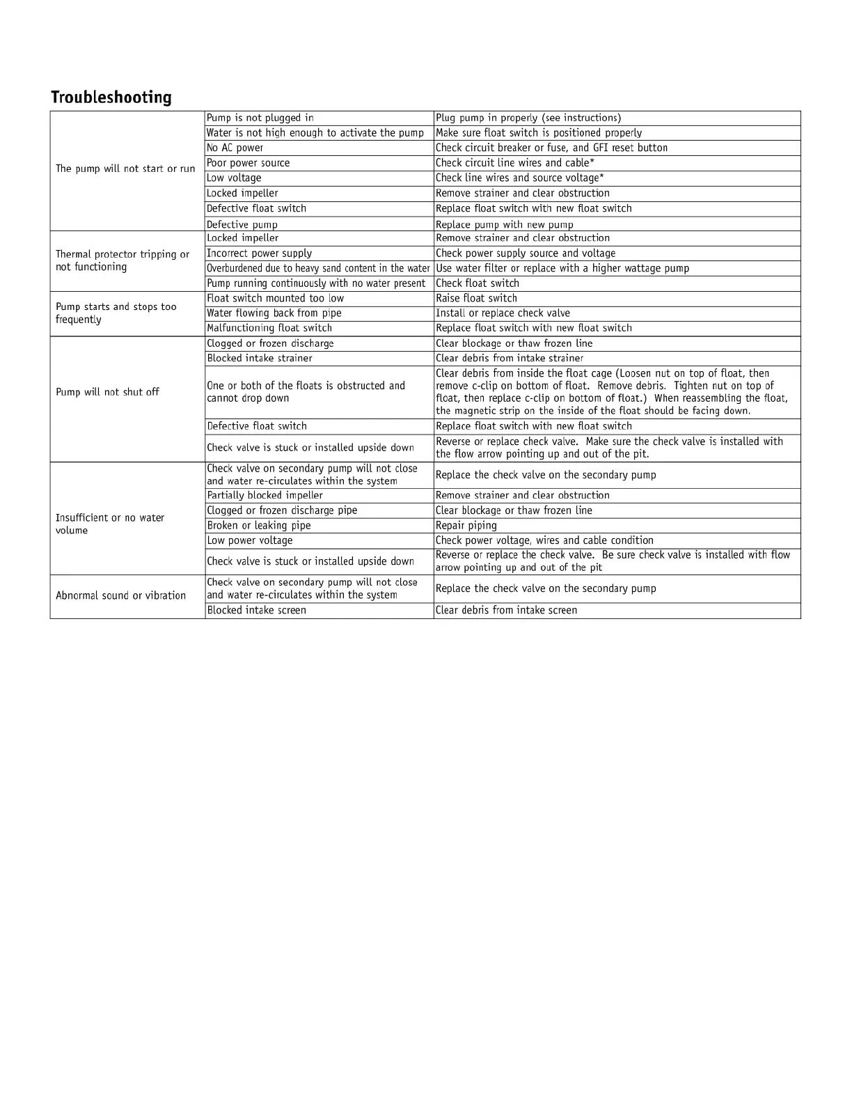 Glentronics BWT050 - Troubleshooting Common Issues; Pump Will Not Start or Run; Thermal Protector Tripping; Pump Starts and Stops Too Frequently