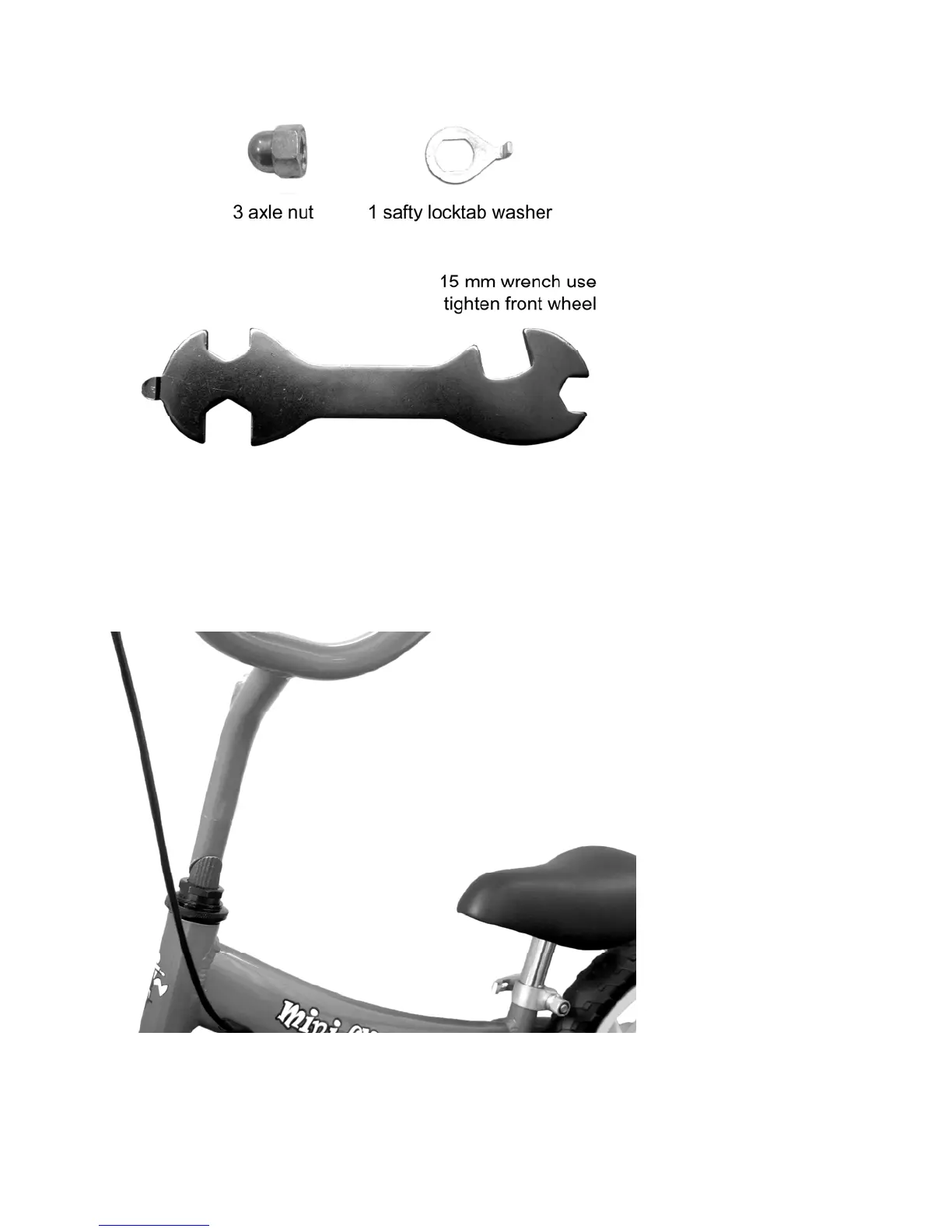 2. Tighten 13 mm bolt with provided Wrench on top of stem until front wheel and handle