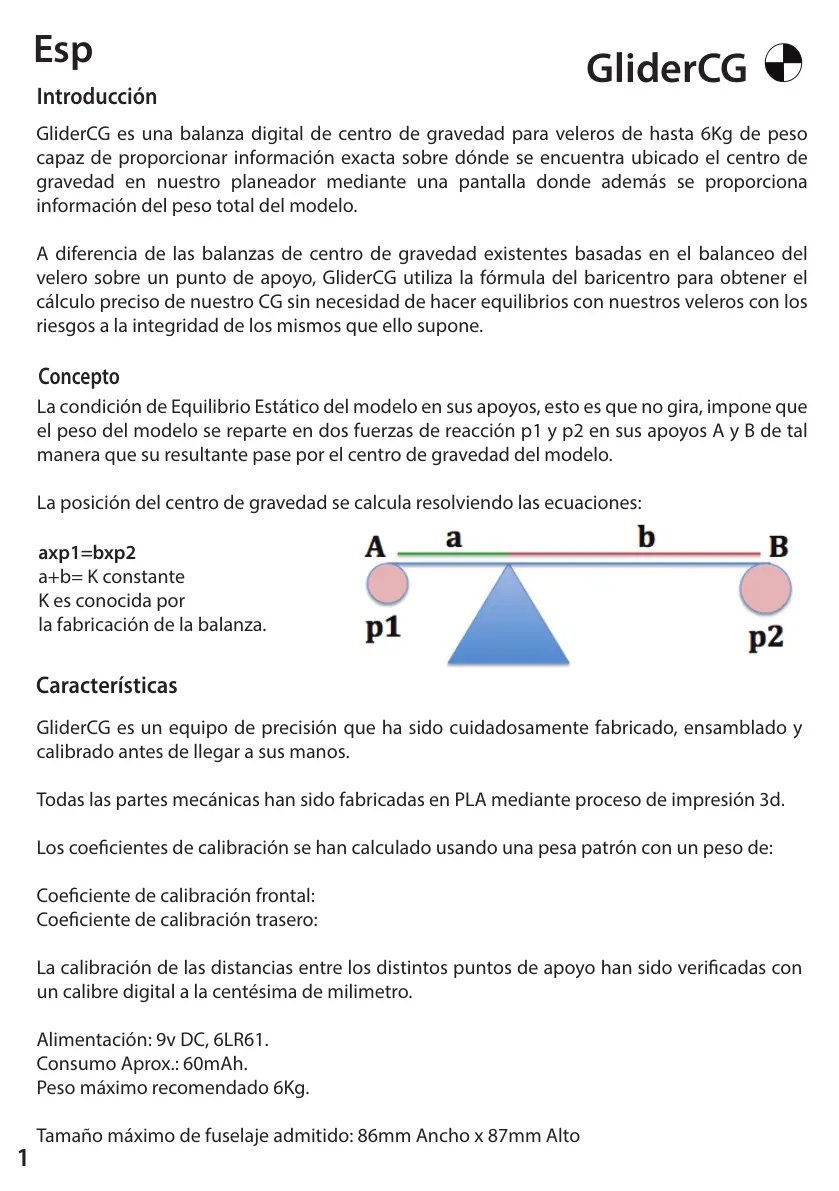 GliderCG es un equipo de precisión que ha sido cuidadosamente fabricado, ensamblado y