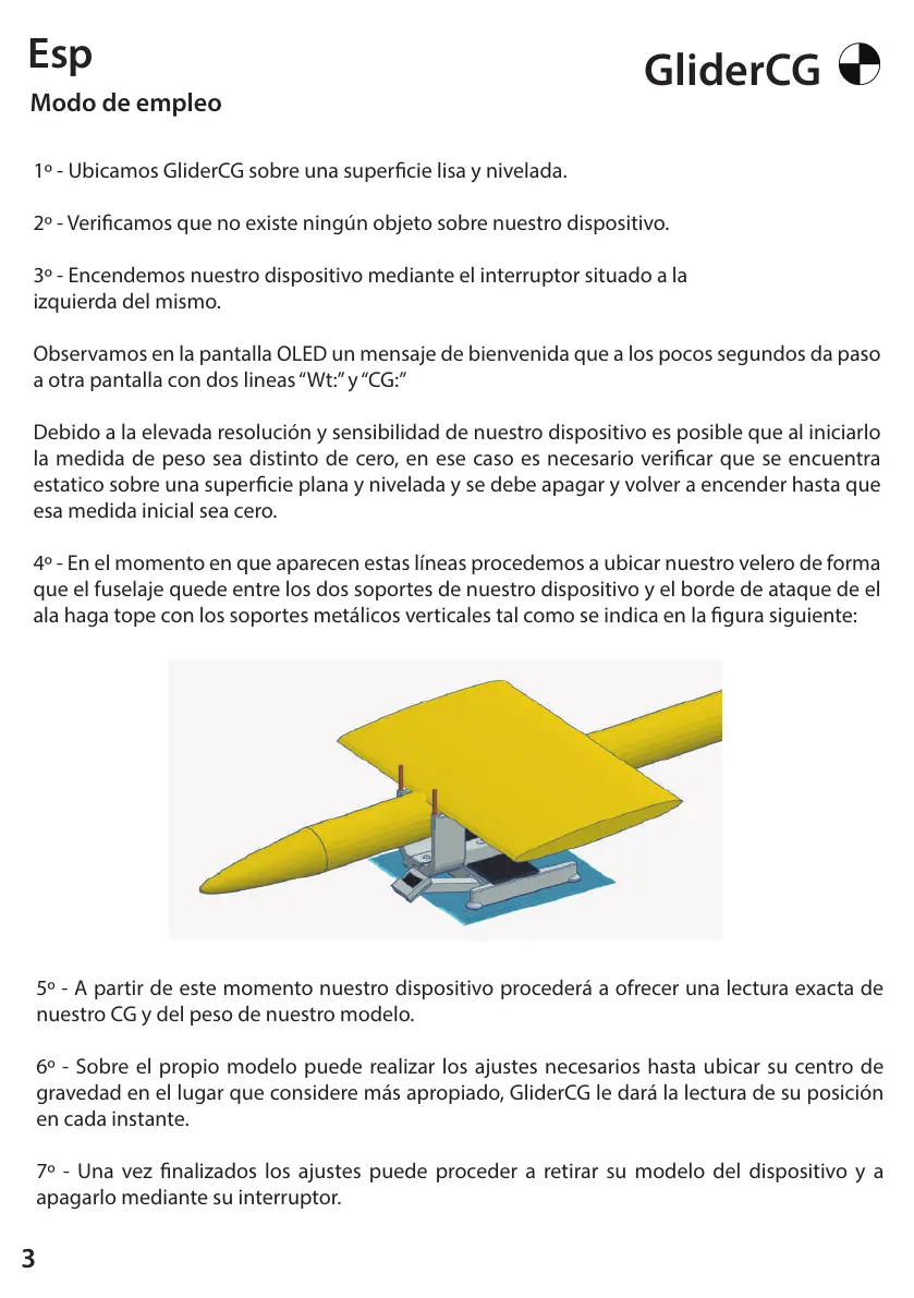 gravedad en el lugar que considere más apropiado, GliderCG le dará la lectura de su posición