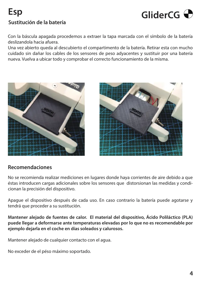 cuidado sin dañar los cables de los sensores de peso adyacentes y sustituir por una batería