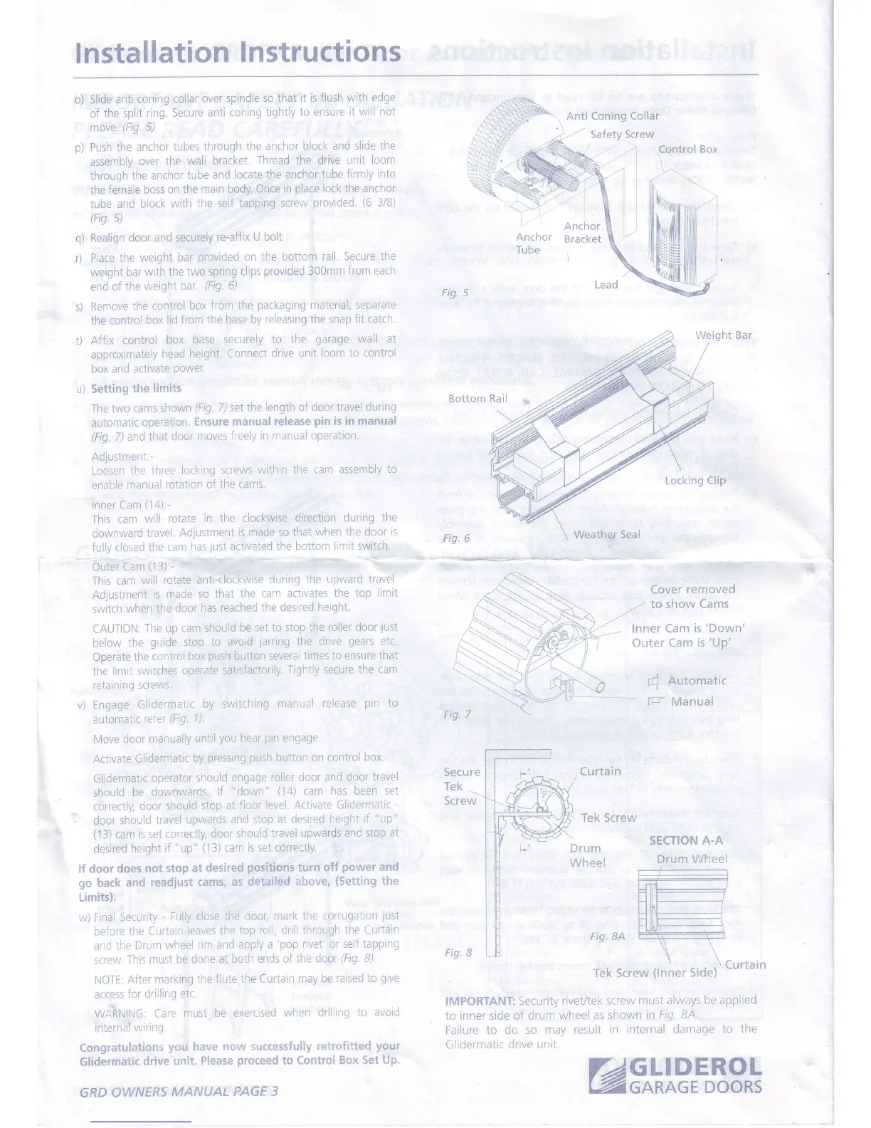 Gliderol Glidermatic GRD - Setting Travel Limits