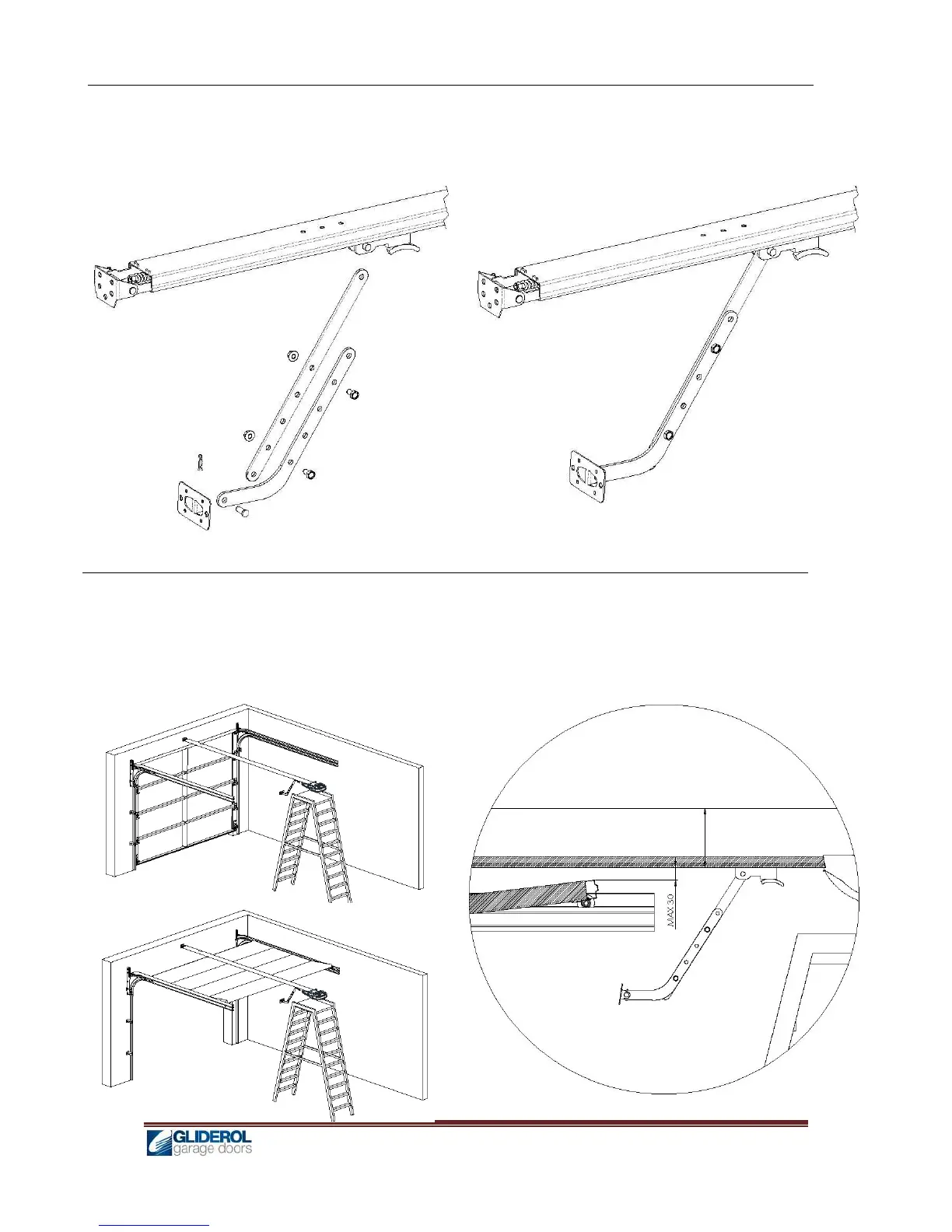 Gliderol Glidermatic GTS+ - Stage 5 - Attach Bracket and Arms to Carriage; Stage 6 - Measure Height of Ceiling