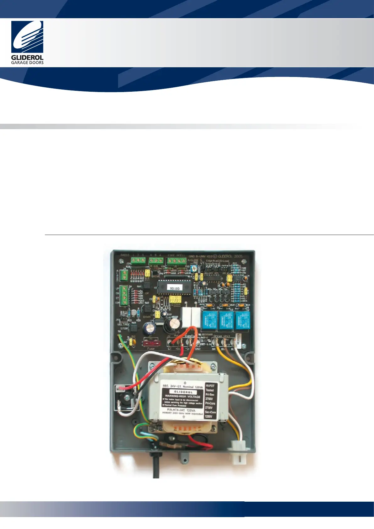 The CONTROL UNIT is best mounted on the same side as the drive unit with an uninterrupted view of the door.