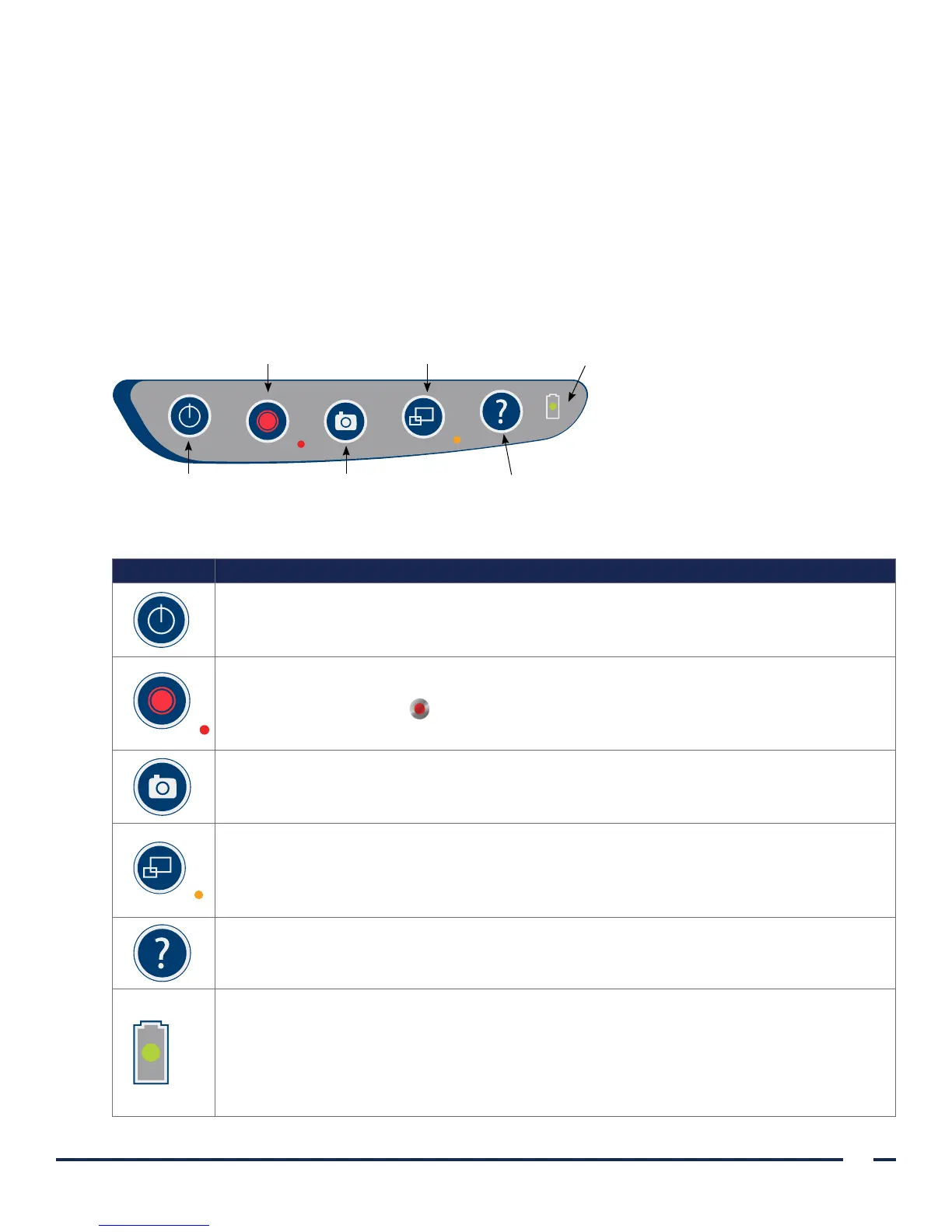 External Video: Press to display video on an external monitor. The yellow LED to the right