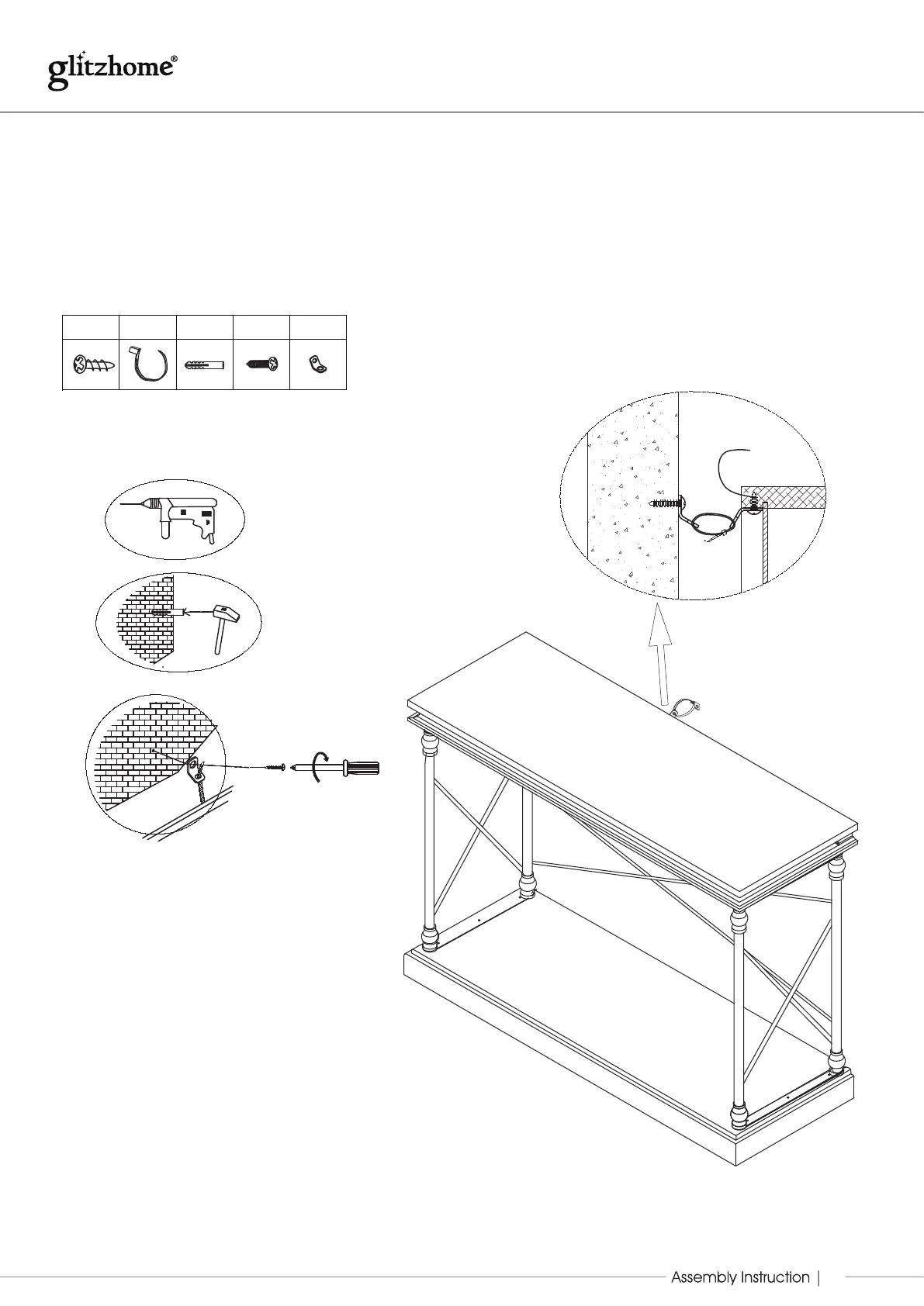 to wall anchor (N) with screw (O) using screwdriver. Place unit back into position. Attach
