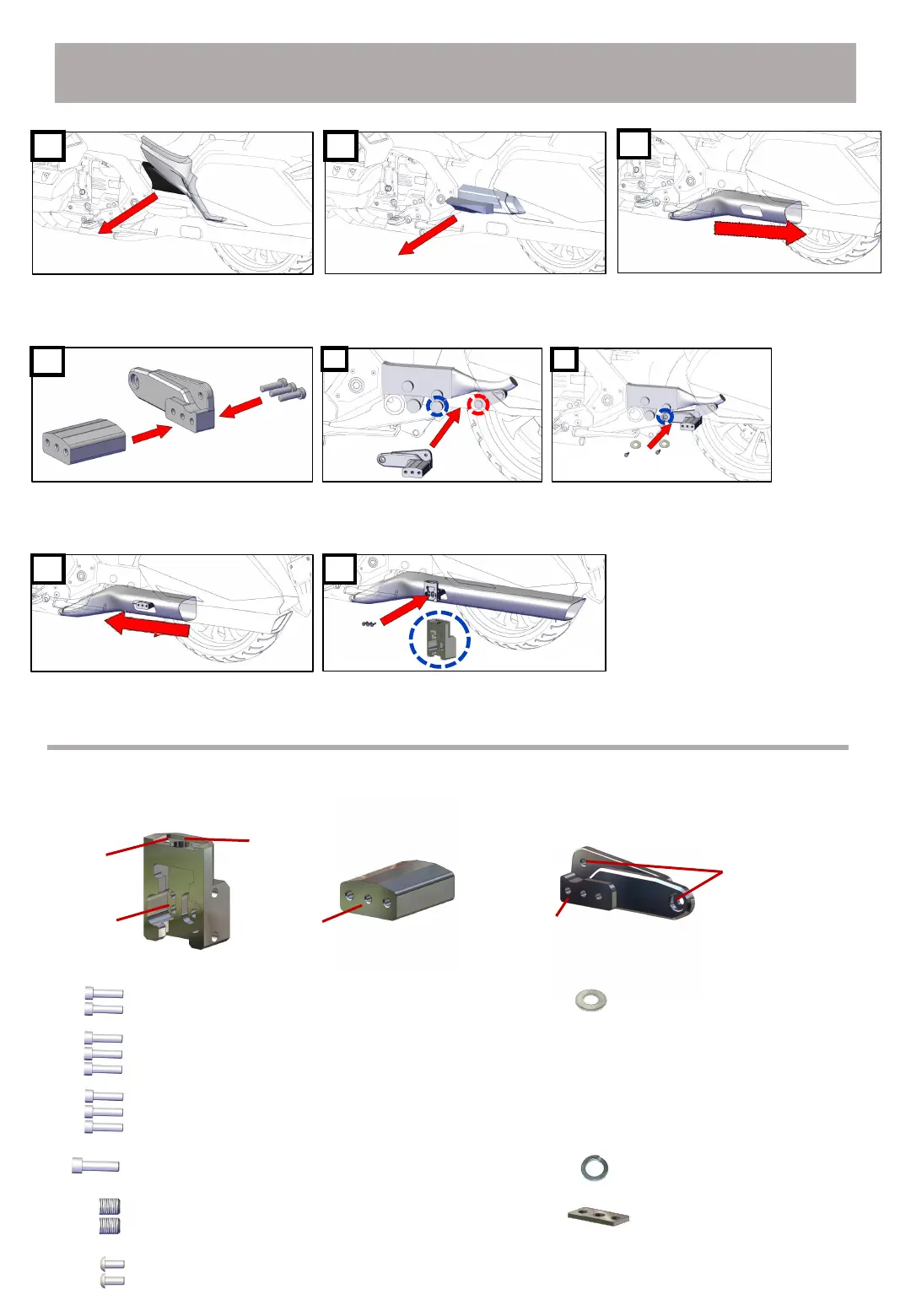 the red circle of the motorcycle using ‘bolt A’ and a spring washer.