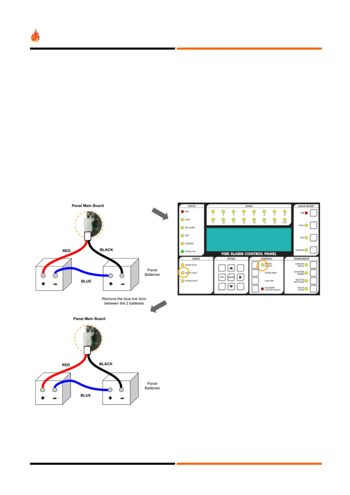 3. When the blue wires are reconnected pressing SYSTEM RESET should clear the fault report.