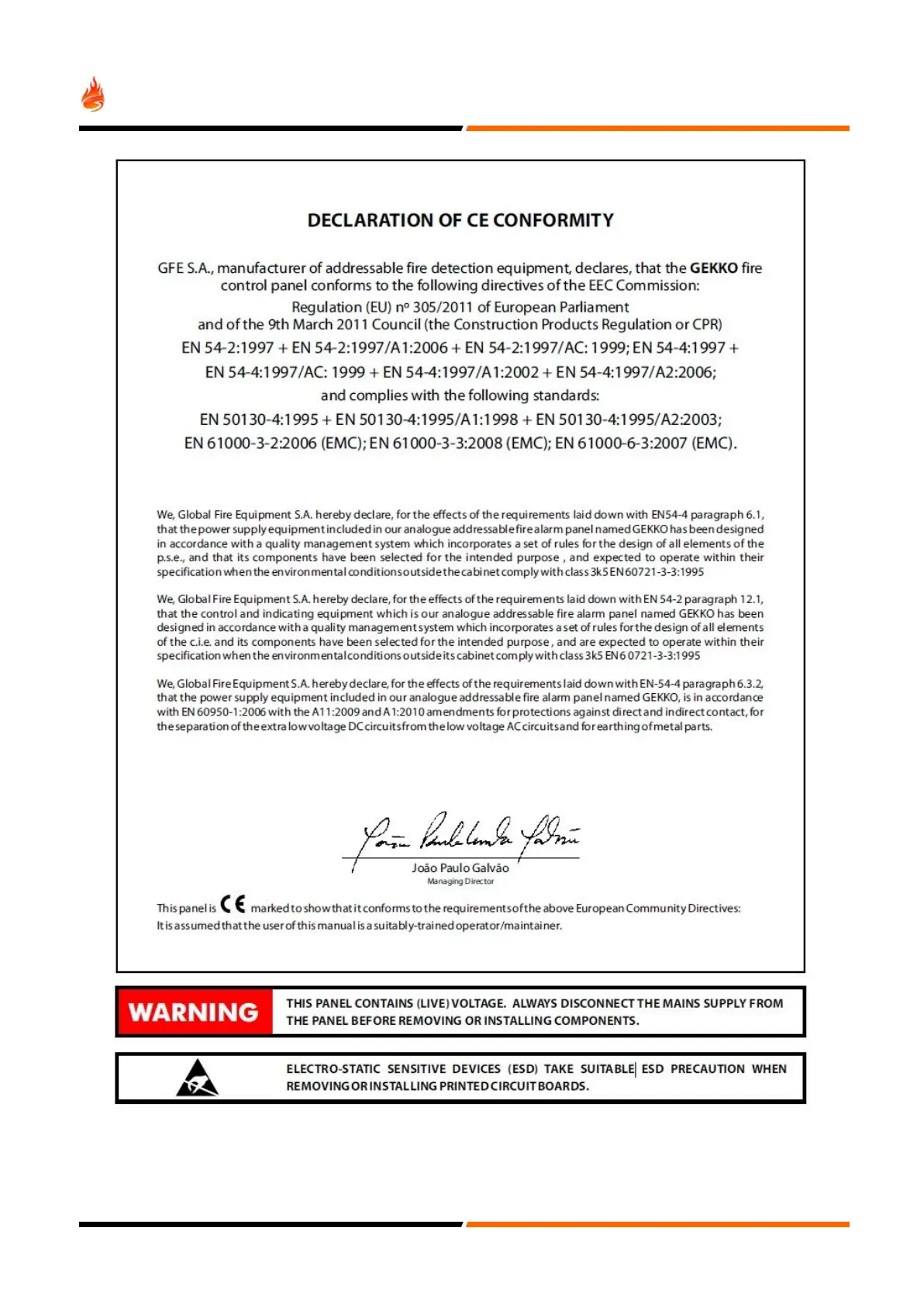 Global Fire Gekko - Declaration of CE Conformity