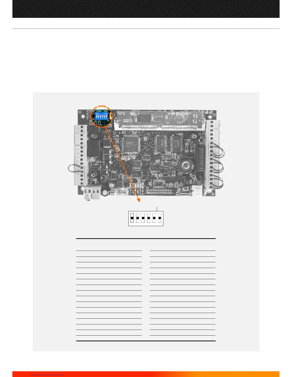 Each Sub-panel has an 6 way DIP switch. The first 5 switches set the panel number.