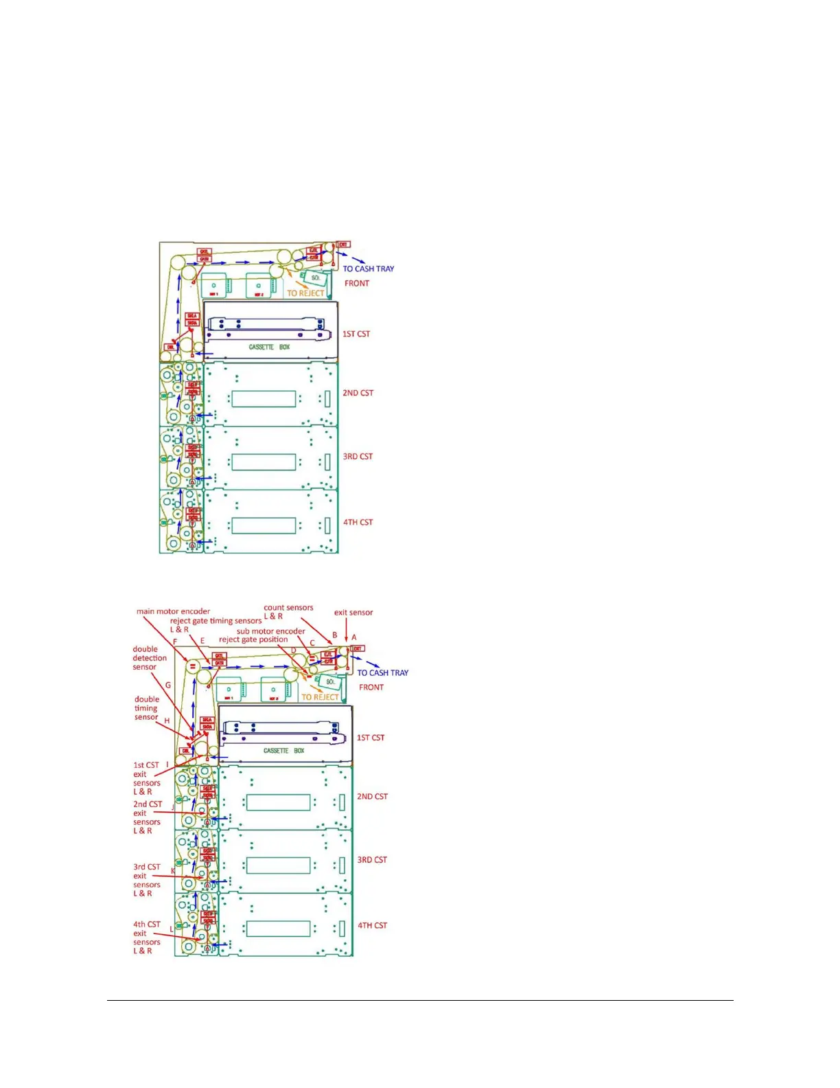 Notes are transported upward all the way to the rear corner of the HCDU.