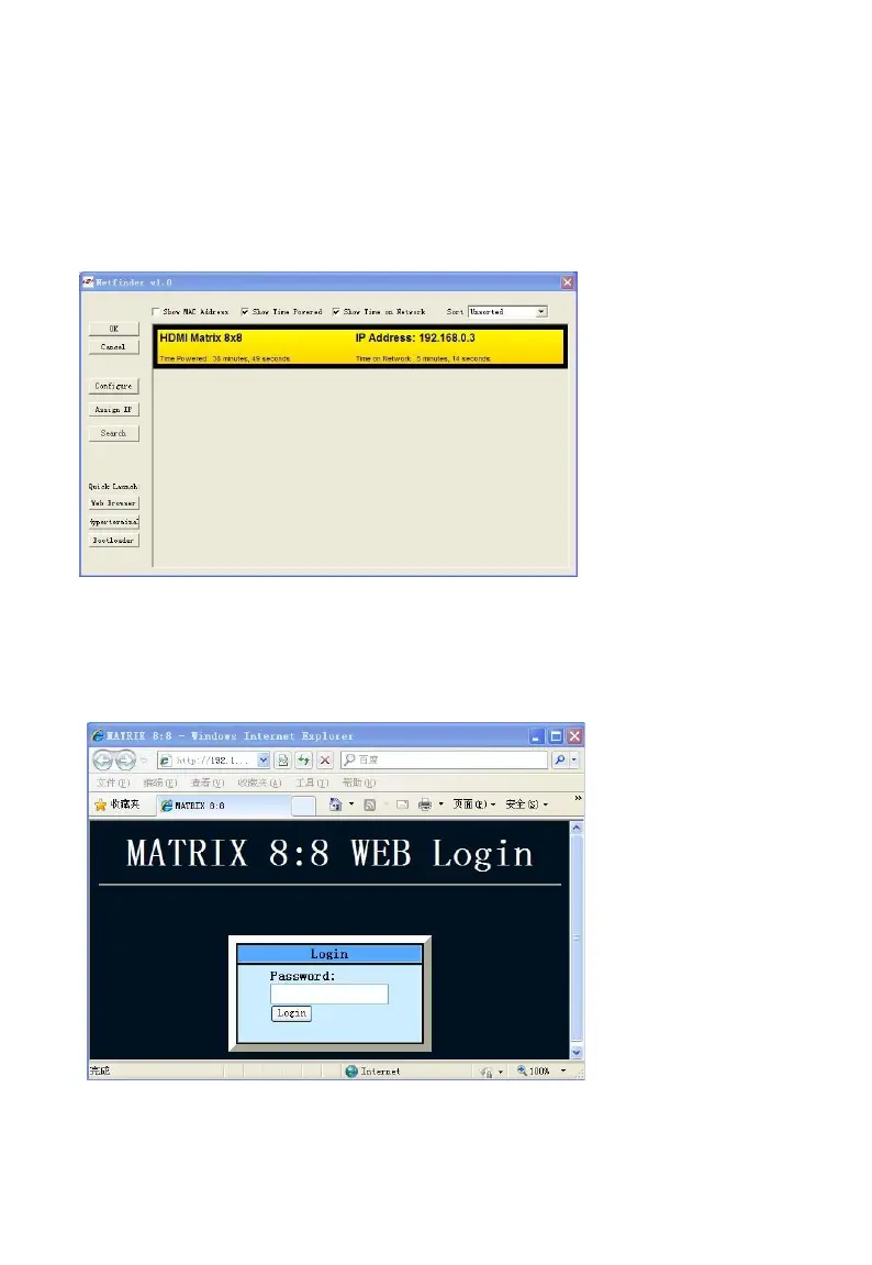 A. Double click Netfinder.exe. Click Search button to get the device IP address.