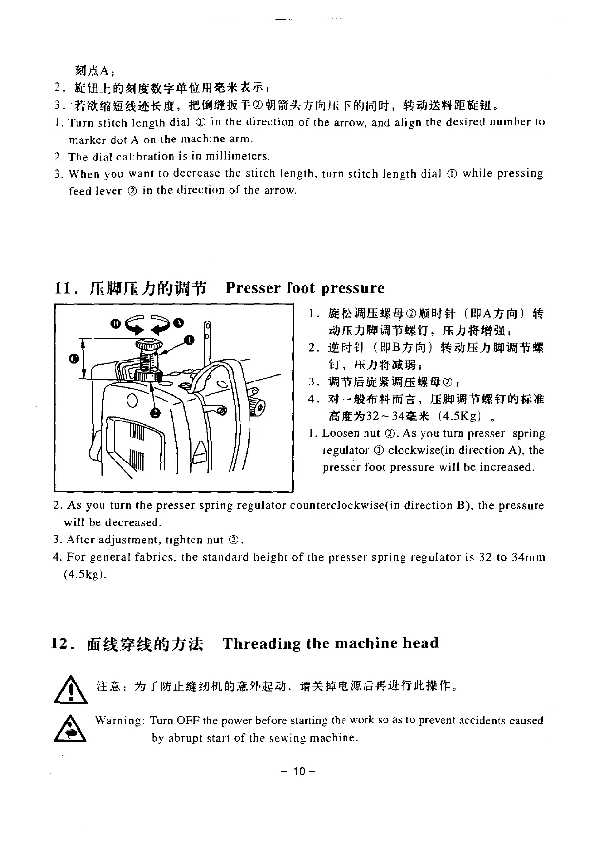 Global 390 D - Adjusting the Stitch Length; Presser Foot Pressure; Threading the Machine Head