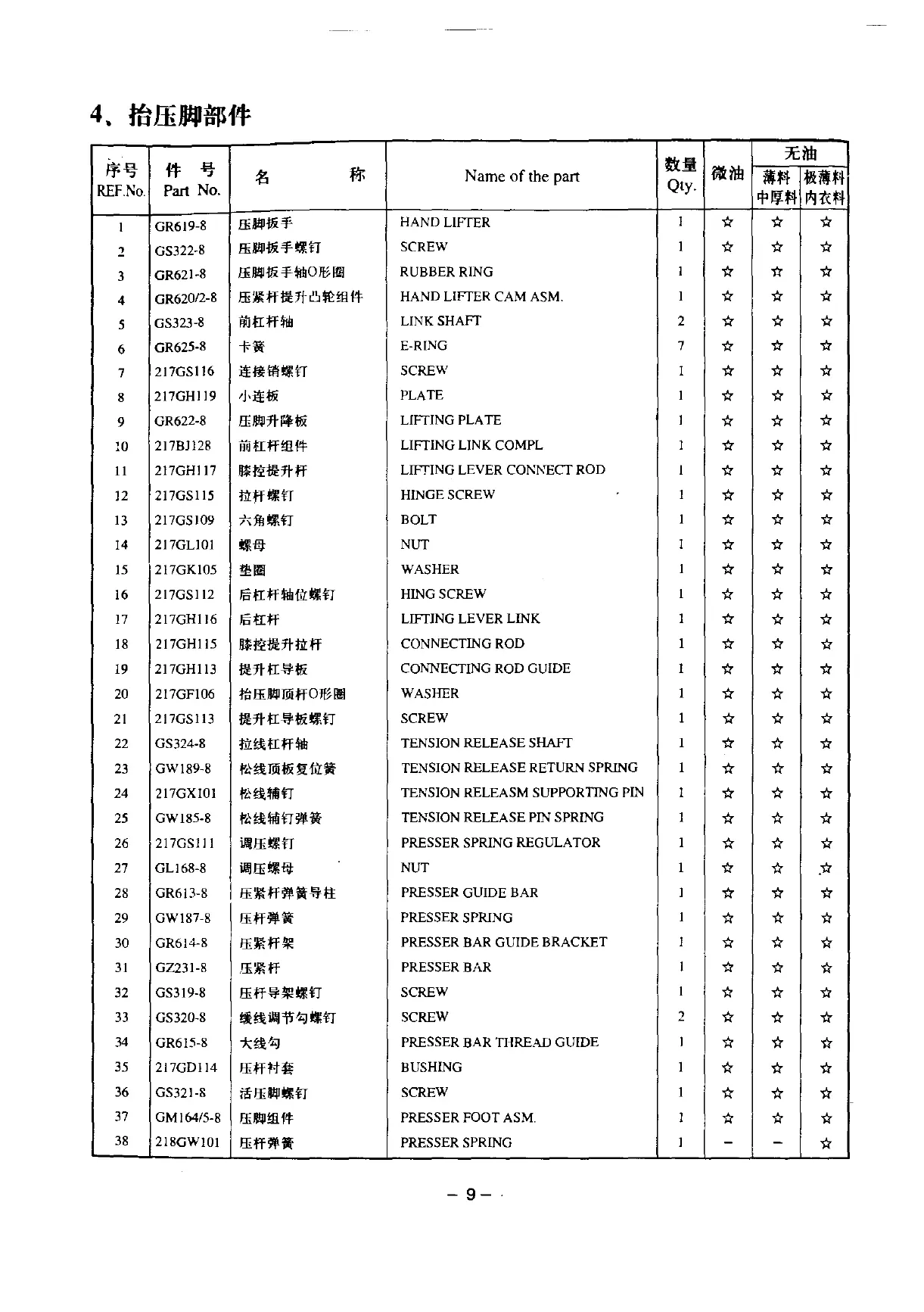 PRESSER BAR