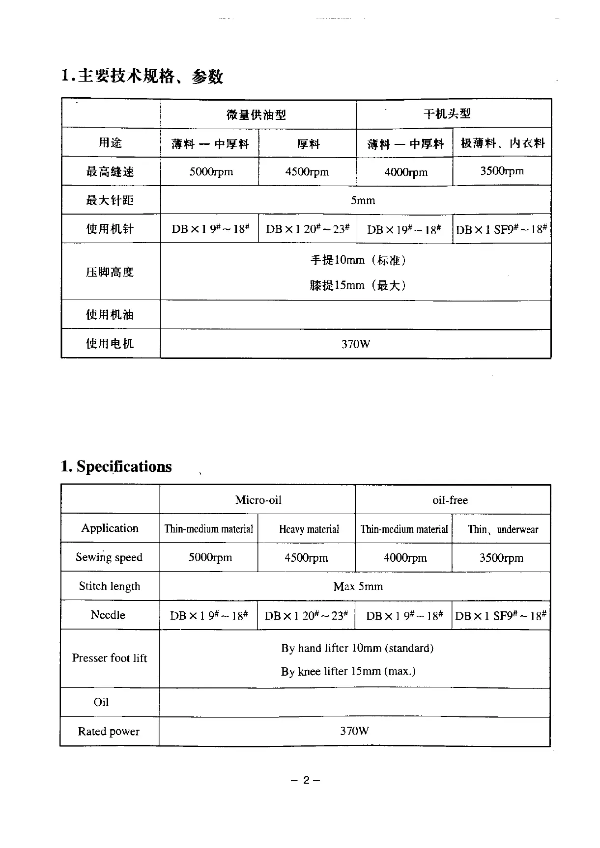 1. Specifications