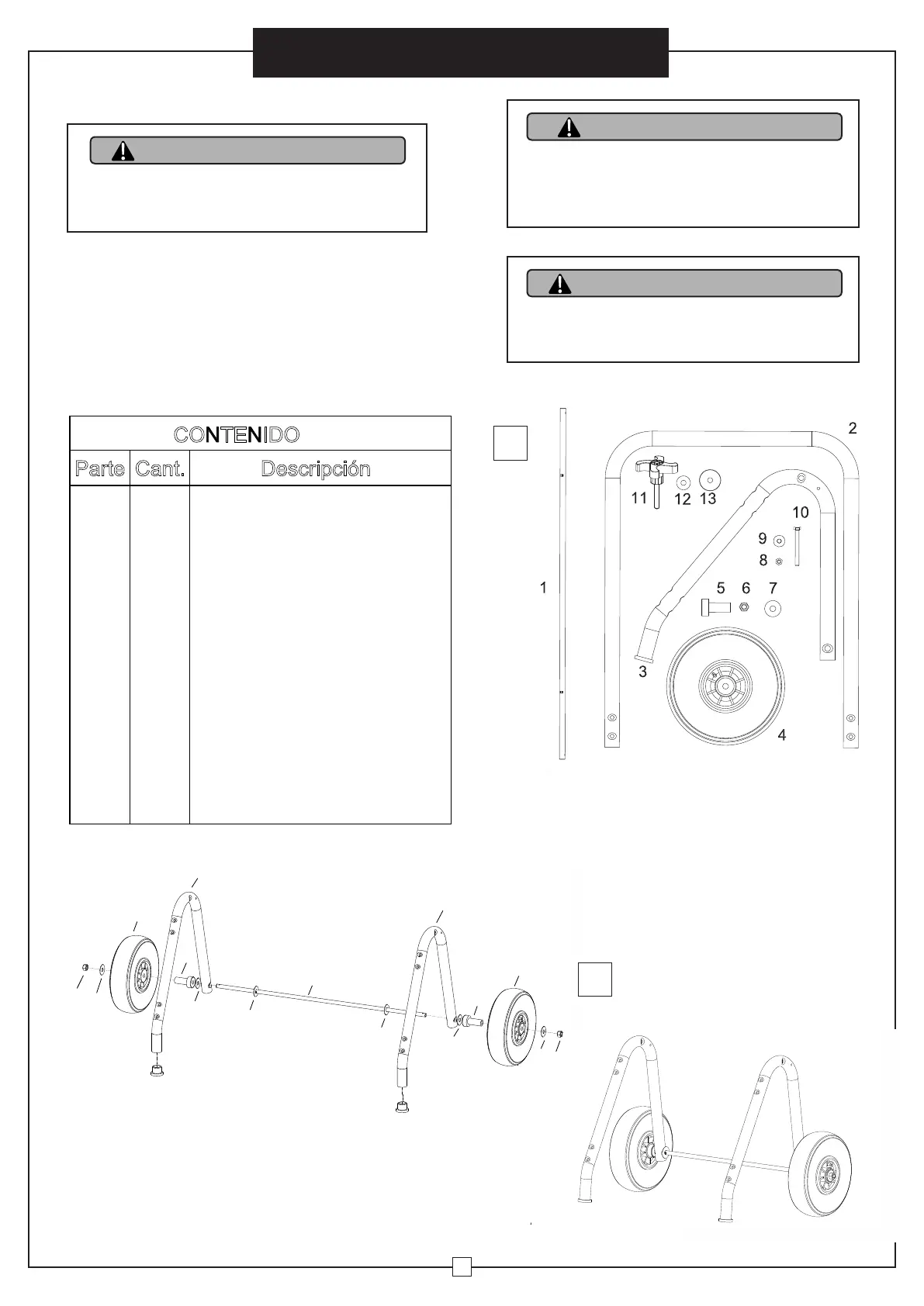 soporte de pie (3) y las ruedas (4).