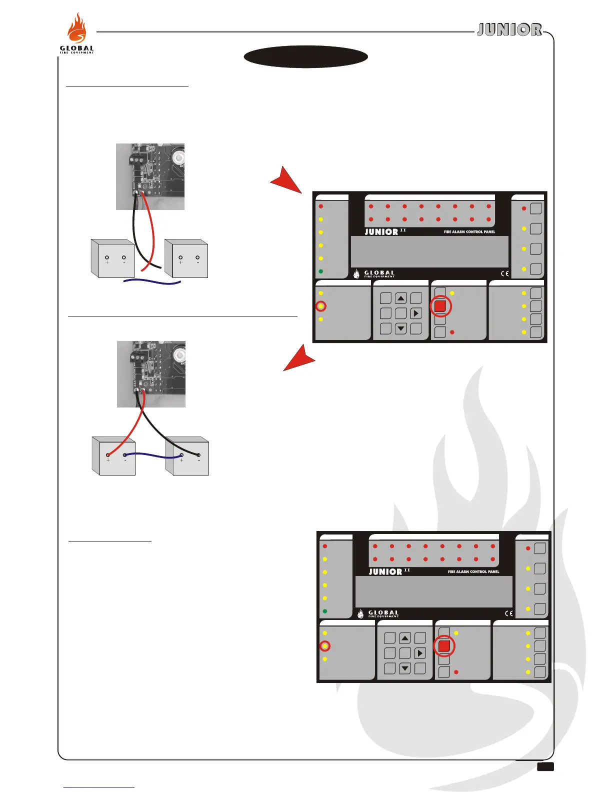 Replace the link between the batteries and reset the panel (SYSTEM RESET) to clear the fault indication.