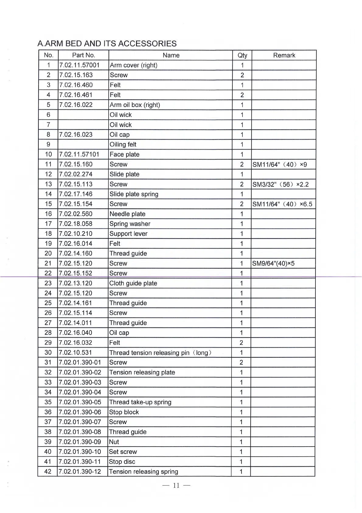 Name Qty Remark