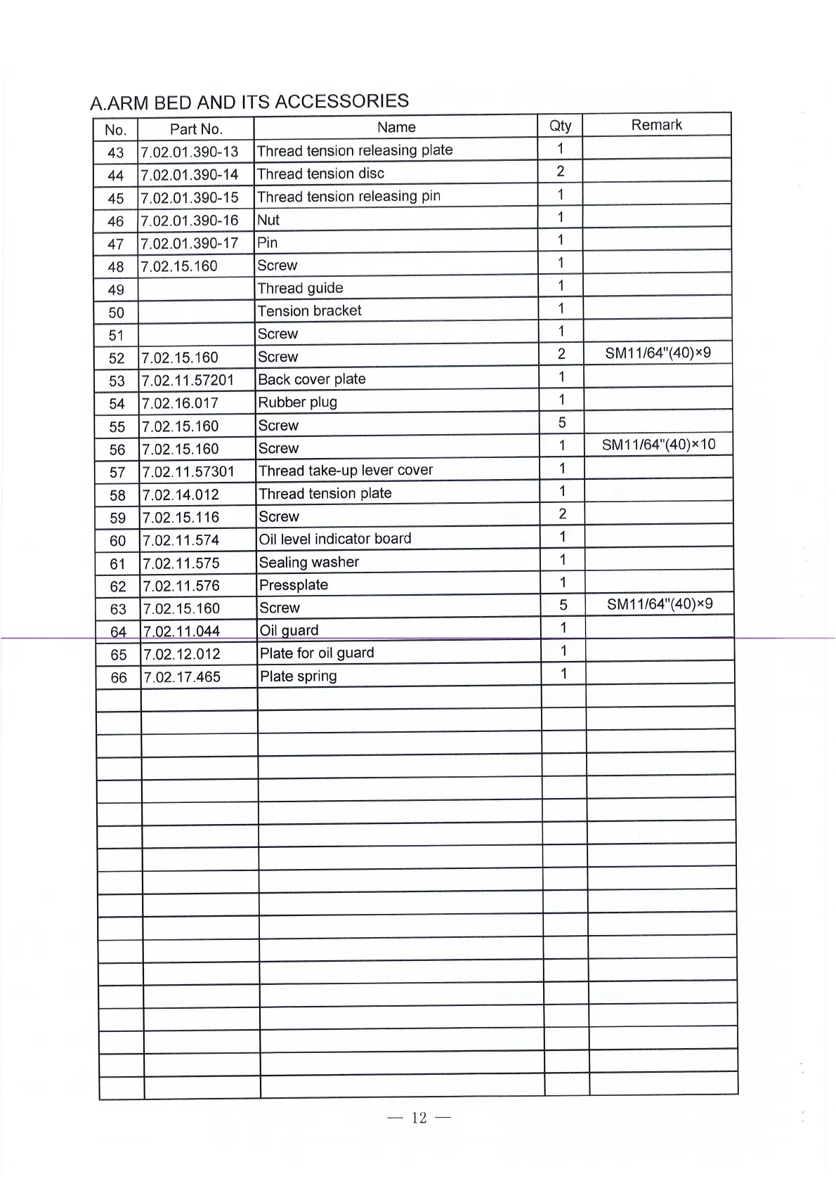 Part No. Name Qty Remark