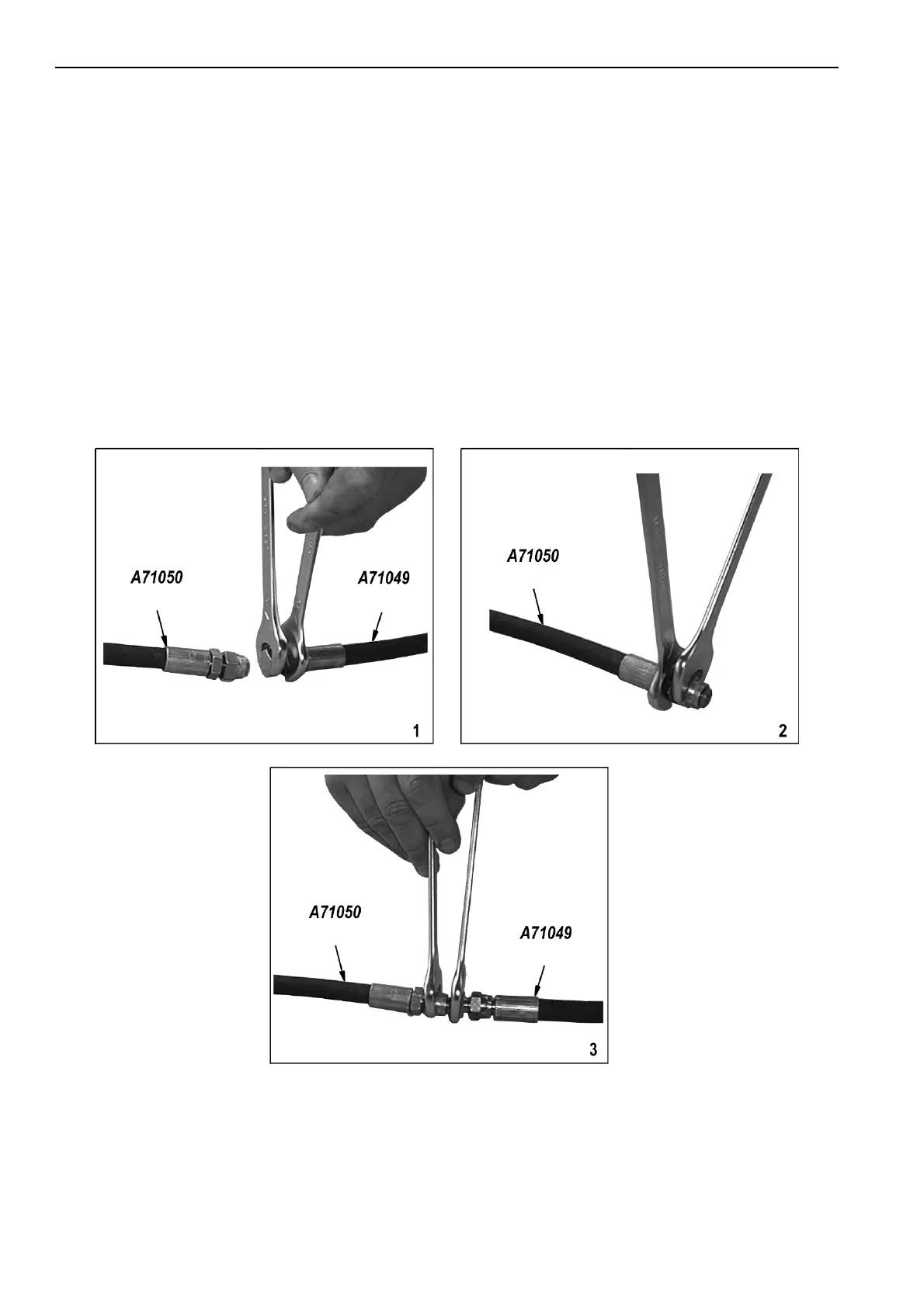 Use two wrenches to remove the caps (male / female) from the fittings of the flexible tubes (A71049 and