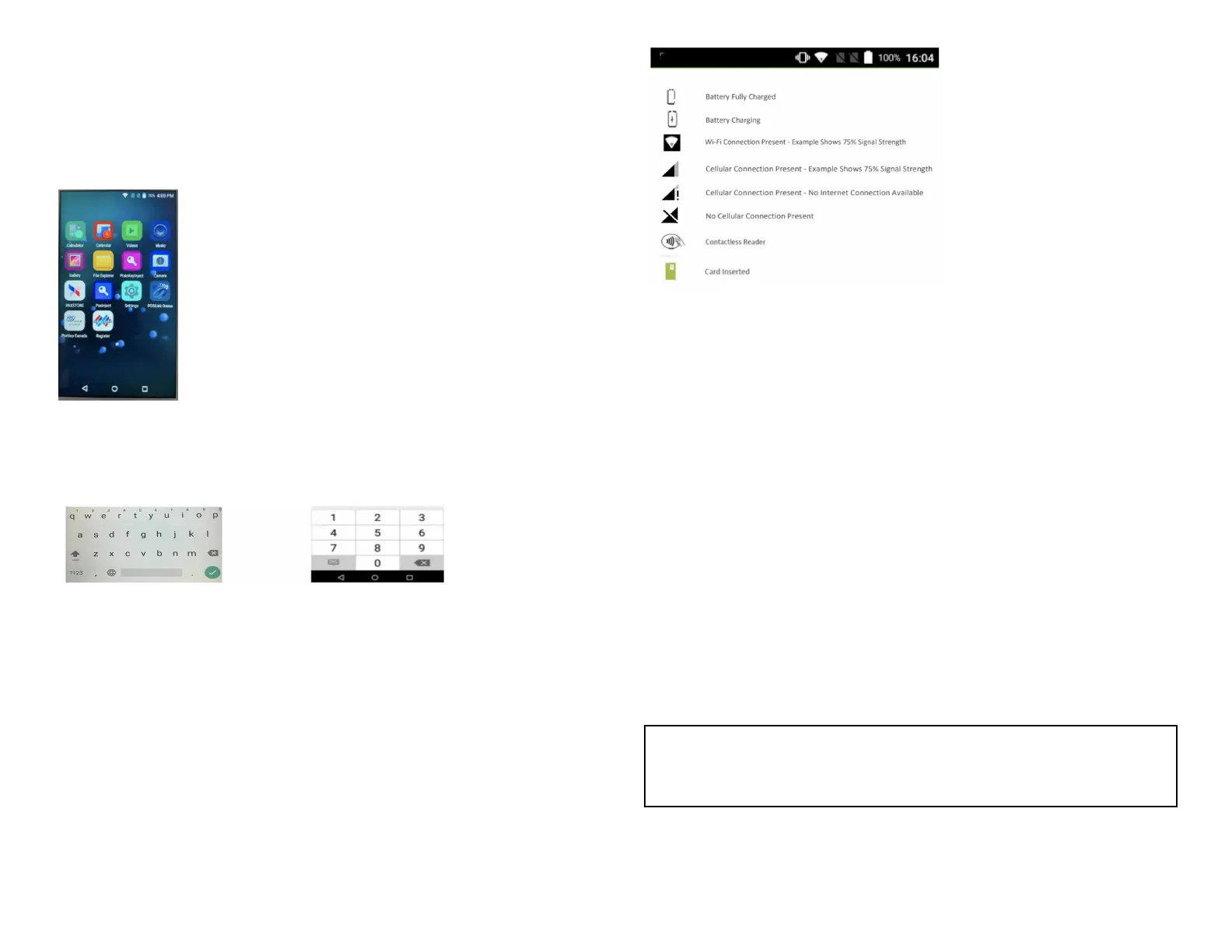 the header of all the screens. They indicate the status of the terminal and