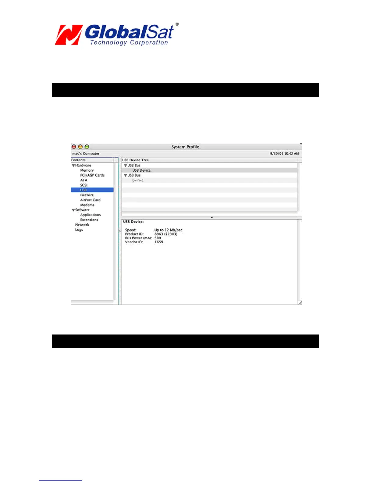 To verify that your device is recognized by the Operating System you can open the System Profiler.