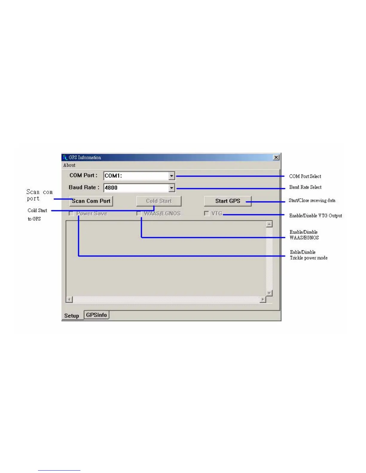 window, which is confirmation that the communication between the GPS device and the “GPSinfo.exe”