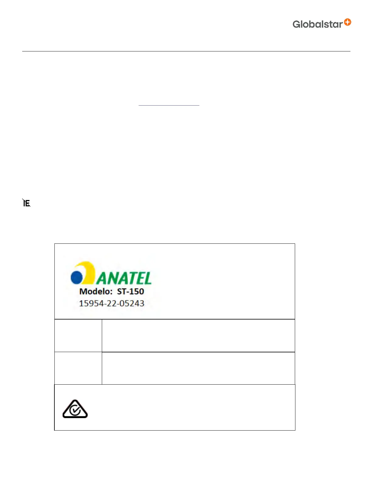 The declaration of conformity may be consulted at Globalstar.com/Regulatory