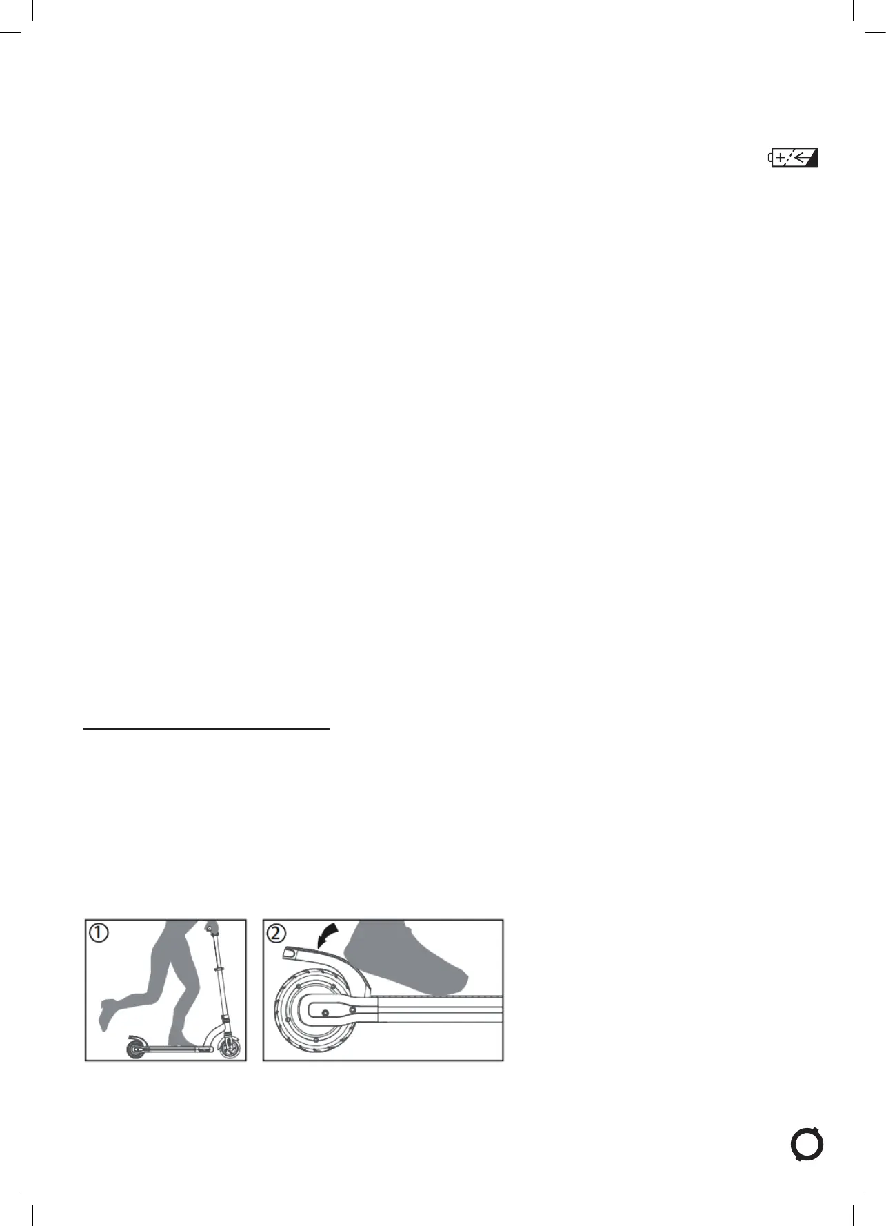 2. Um travão de pé mecânico está localizado na parte traseira da trotineta. Quando necessário, pressione-o para abrandar.