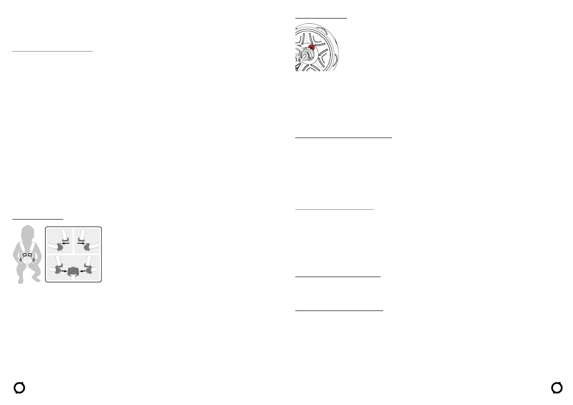 - Un système de harnais 5 points est présent sur le siège ; réglez la glissière de chaque sangle avant la première utilisation. Les sangles d’épaules et les sangles de taille doivent être fermement ajustées