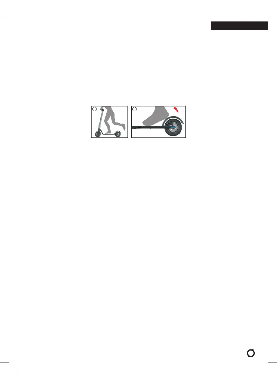 2. Un freno meccanico a pedale è situato sulla parte posteriore del monopattino; quando è necessario, premerlo per