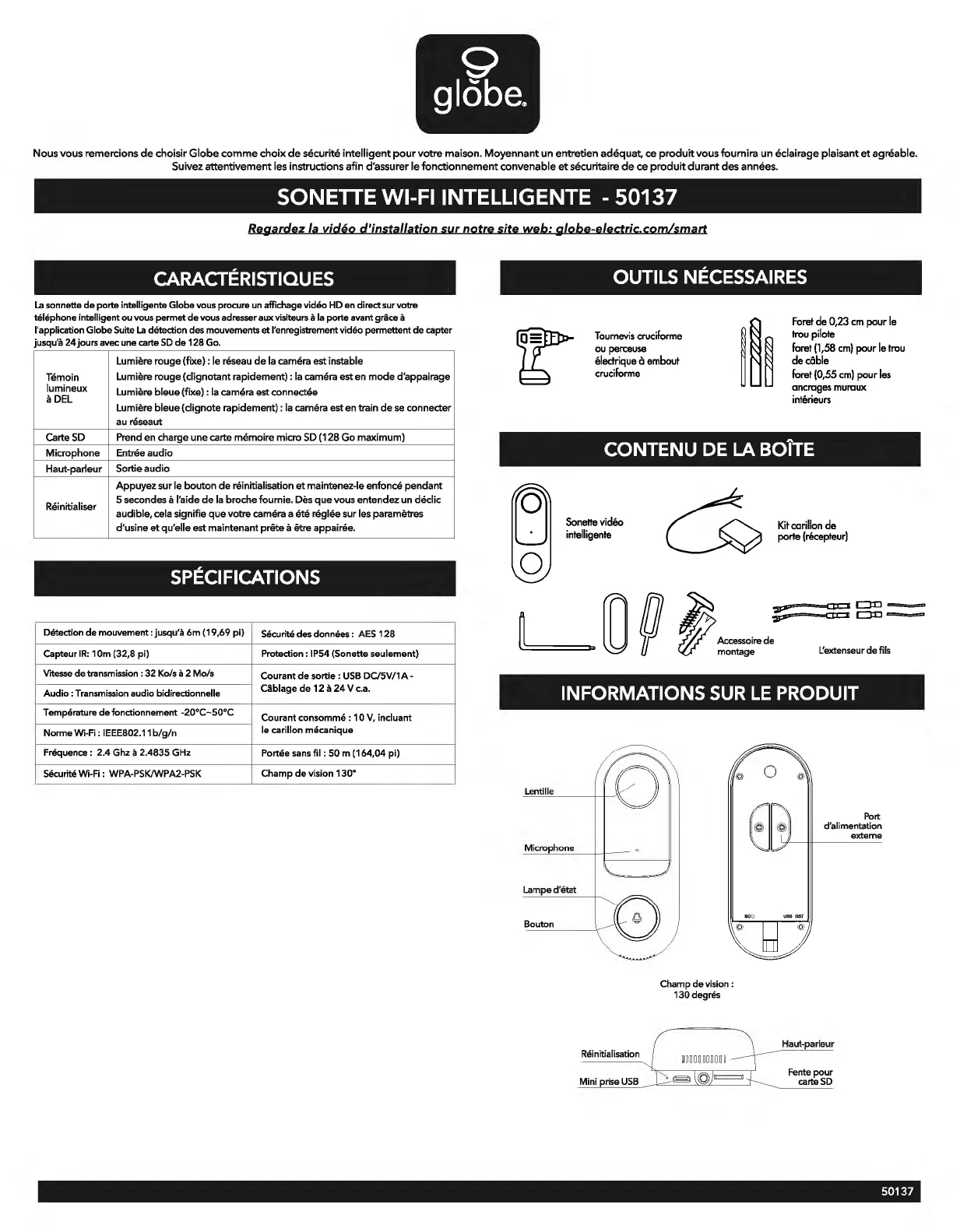 sonnette de porte intelligente Globe vous procure