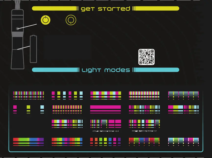 *MODES 14-18 WILL NOT USE THE PROGRAMMED COLOR PALETTE. THESE MODES WILL ALWAYS USE A RAINBOW OF COLORS PRESET.